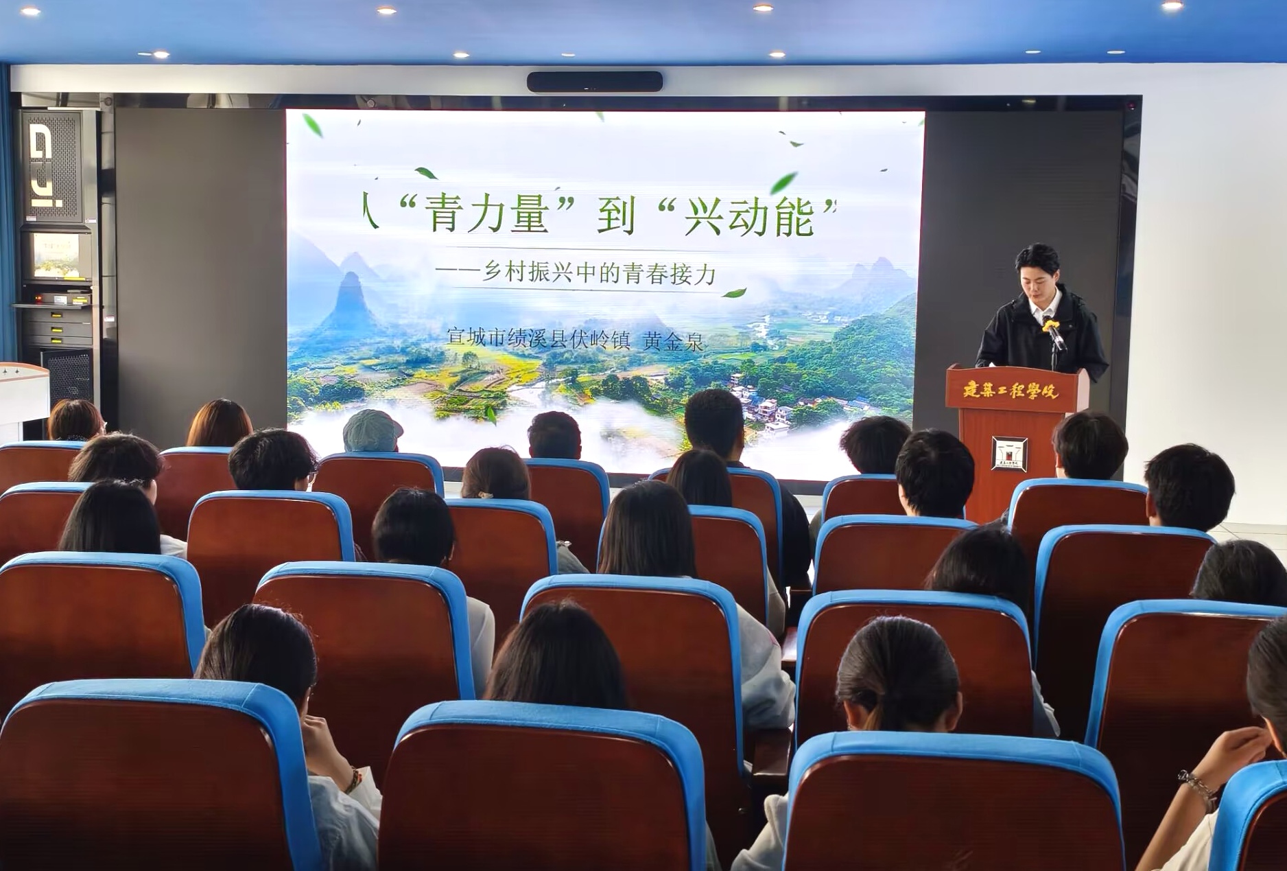 紧接着,学院2024届毕业生黄金泉(安徽省西部计划宣讲团成员、现服务于安徽省宣城市绩溪县伏岭镇)来到现场,分享了他参与西部计划服务经历与基层成长的感悟,剖析基层就业机遇与成长路径。在互动环节中,同学们围绕服务期间具体服务专项、待遇保障、工作生活环境等热点问题踊跃提问,黄金泉结合政策文件与自身实际案例逐一解答,现场氛围浓厚。