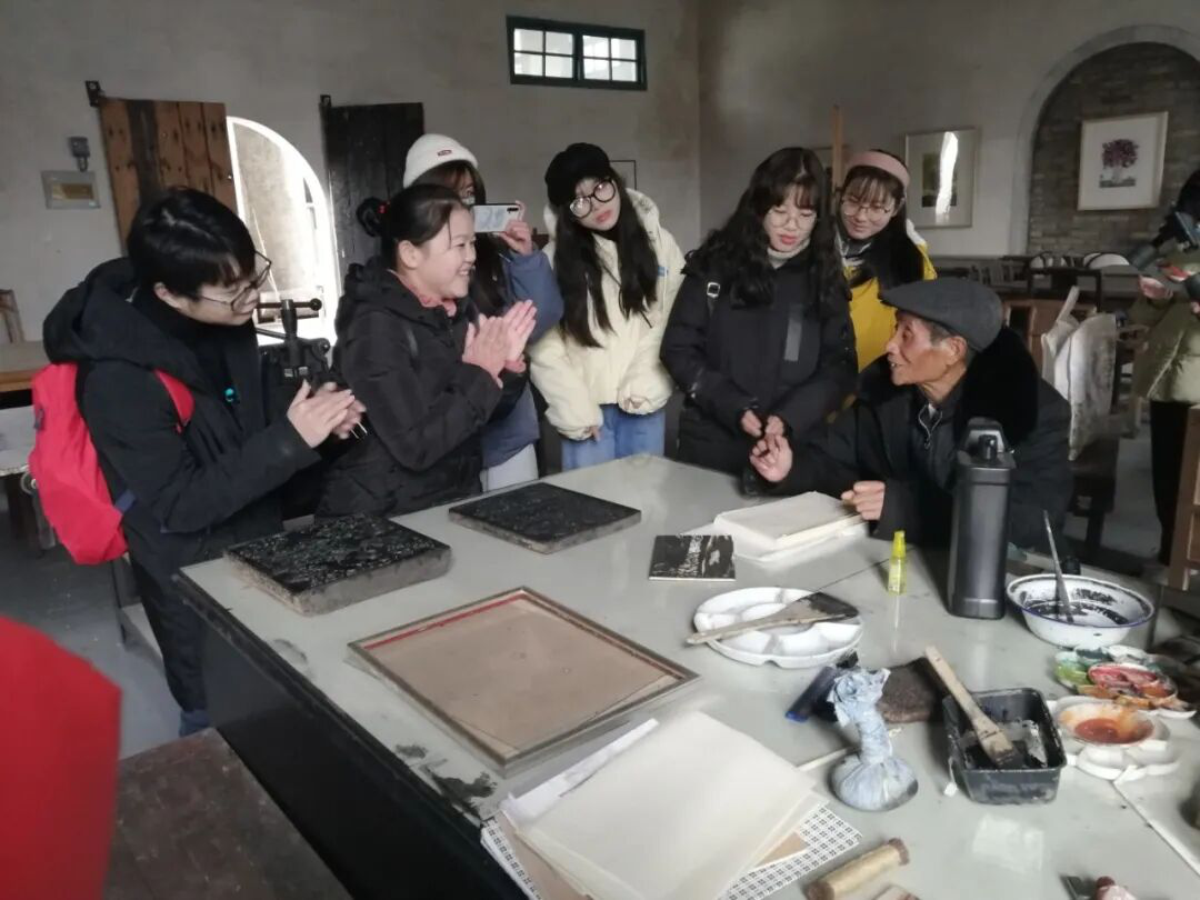 活动中,在徽州活字印刷展示馆馆长、非遗传承人姚老先生的带领下,依次调研参观了徽州活字印刷展览馆、渔梁美术馆展厅、美术馆研学教室和版画教学基地。通过实地调研学习和非遗传承人的引导介绍,一行人对琳村的传统文化、艺术风采等有了进一步的了解。非遗传承人通过对当地文化的深刻见地,送给大家的“灵、精、快、勤、存”五字箴言让众人受益匪浅,增加了对做好文化传承和助力乡村文化振兴的信心和决心。