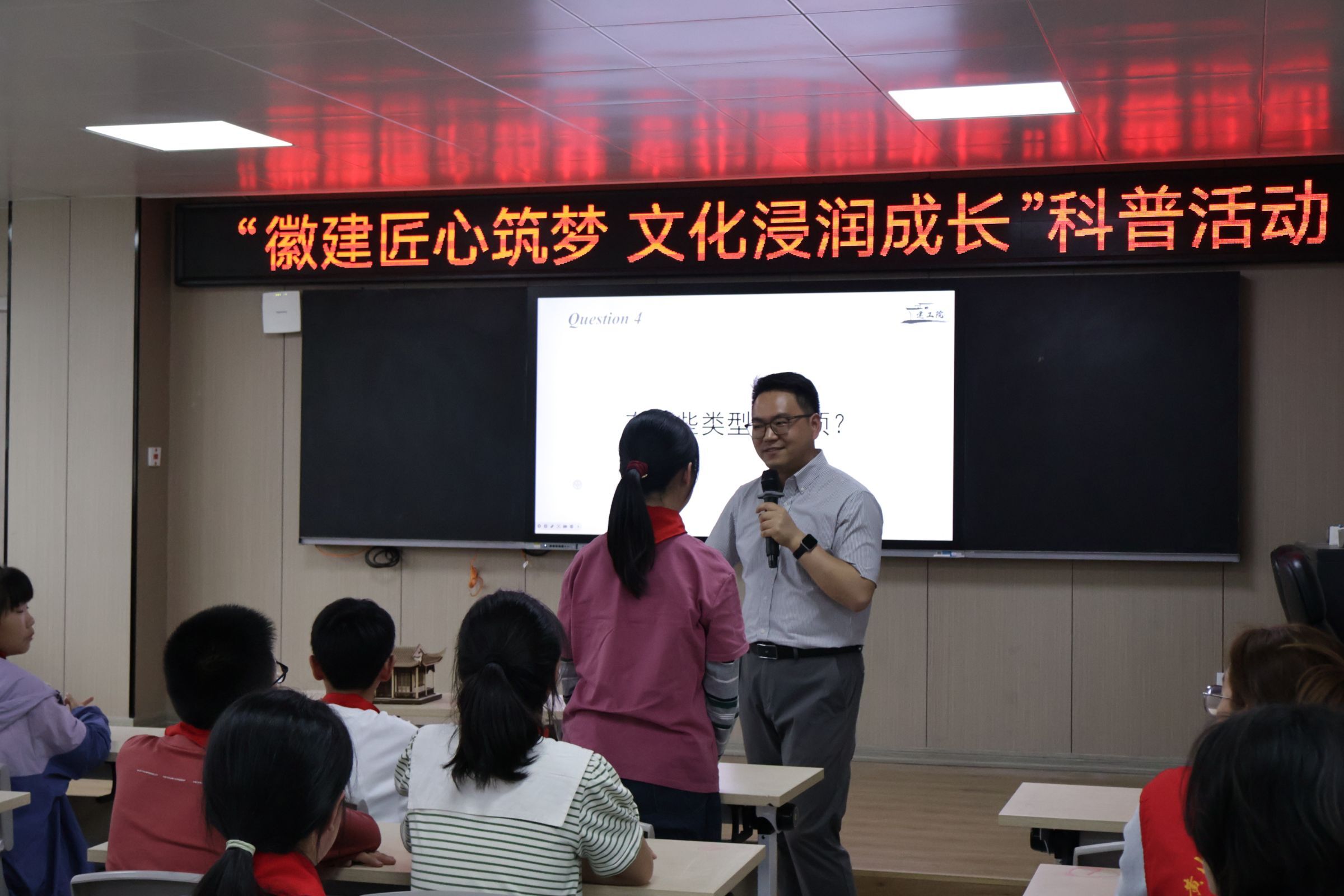 徽派建筑作为中国传统建筑中的瑰宝,承载着深厚的历史底蕴与独特的文化魅力,是中华民族优秀传统文化的重要组成部分。4月27日,太阳集团网站8722徽建筑梦志愿宣讲团与城乡规划专业教师程飞博士走进屯溪区长干小学,开展了一场别开生面的徽派建筑文化探索之旅。