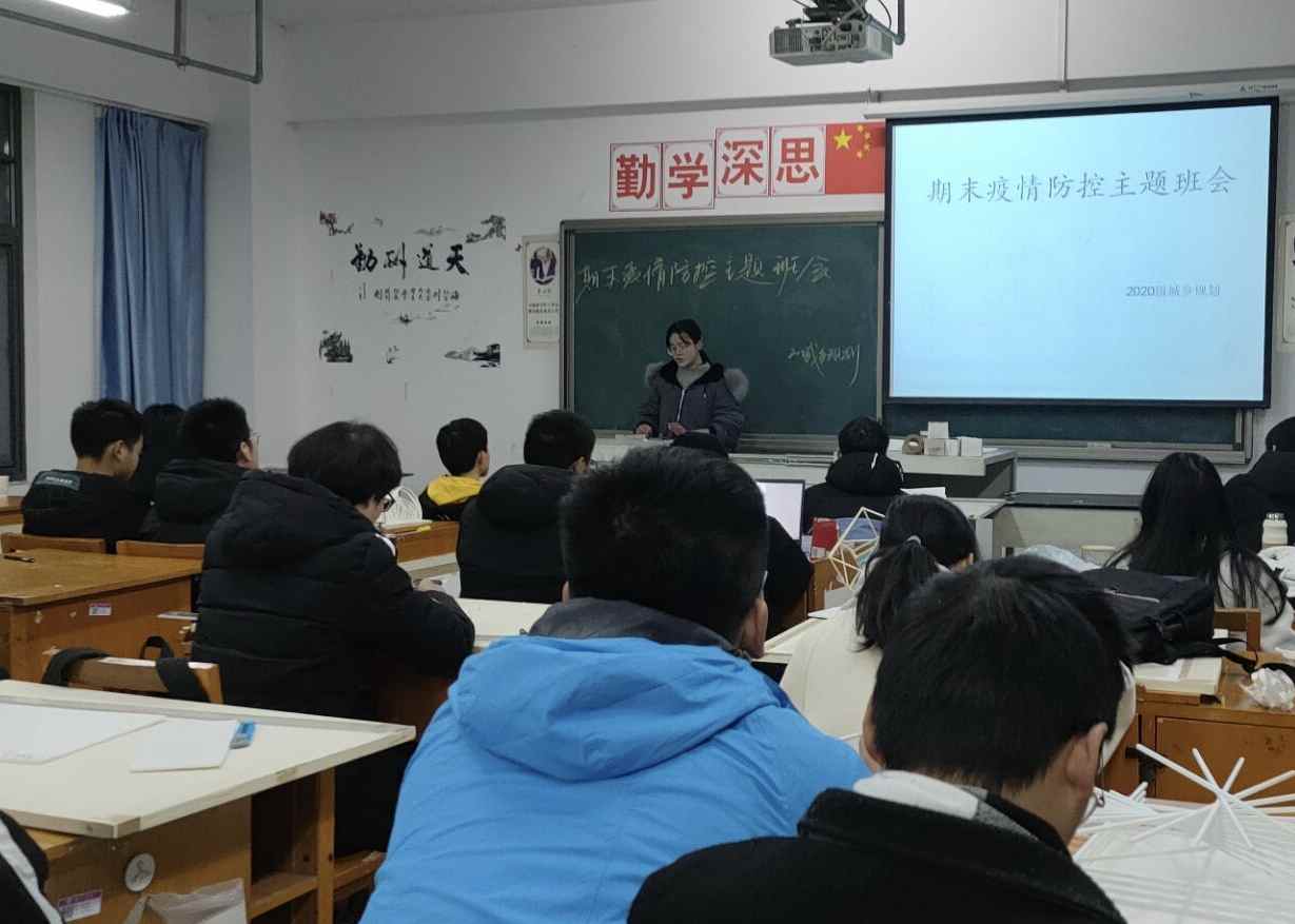 1月13日,为加强期末放假后同学们疫情防控意识,20级城乡规划班开展了主题为“期末疫情防控”的主题班会活动。班会由辅导员李倩倩主持,20级城乡规划班全体同学在文峰楼6606教室参加。