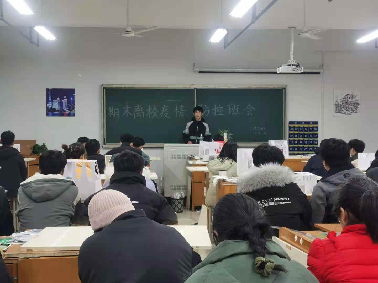 1月13日晚,20级建筑学全体人员在文峰楼6503参加了期末离校疫情防控班会,辅导员李倩倩主持会议,班长进行发言。此次班会目的是“全面做好新冠肺炎疫情防控工作,切实保障师生健康及校园平安”。