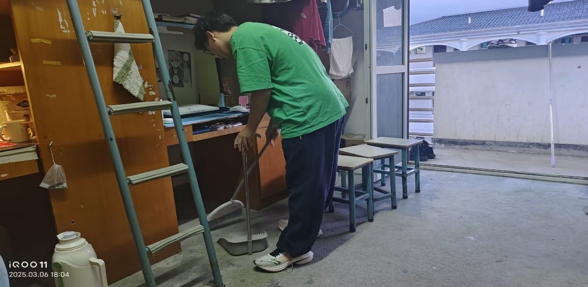 学院组织同学开展宿舍卫生大扫除活动,同学们分工合作,整理书桌、清扫地面,将宿舍装扮得温馨而整洁。在这场大扫除中,学院学子用实际行动展现出热爱劳动、团结协作的精神风貌,集体荣誉感也在大家的共同努力中悄然增强,良好的宿舍文化氛围愈发浓厚。