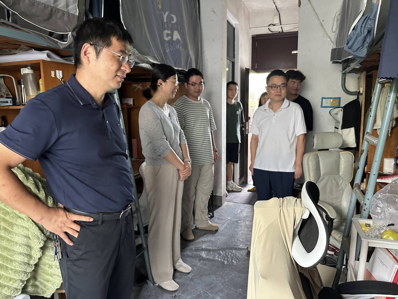 8月31日下午,学院领导班子及全体专职辅导员深入学生宿舍、教学楼、实验室等重点区域,开展“全覆盖、面对面”走访调研。班子成员与学生亲切交谈,详细询问暑期生活、学业规划及就业意向,认真听取对课程设置、实践教学的意见建议。调研不仅聚焦宿舍卫生、消防安全等基础保障,更注重“思想引导与需求服务”双同步:针对部分学生的“开学焦虑”及时开展心理疏导,为考研就业学生提供个性化指导方案。通过“察实情、解难题、暖人心”的一线走访,切实打通服务学生的“最后一公里”。