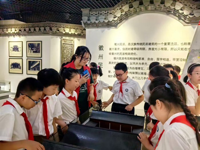 活动期间,学院“徽建筑梦”宣讲团带领长干小学师生们参观徽派建筑展览馆,通过实物展示与现场讲解,让学生近距离感受徽州建筑文化魅力,展现了高校学生在文化传承与社会服务中的积极作用。