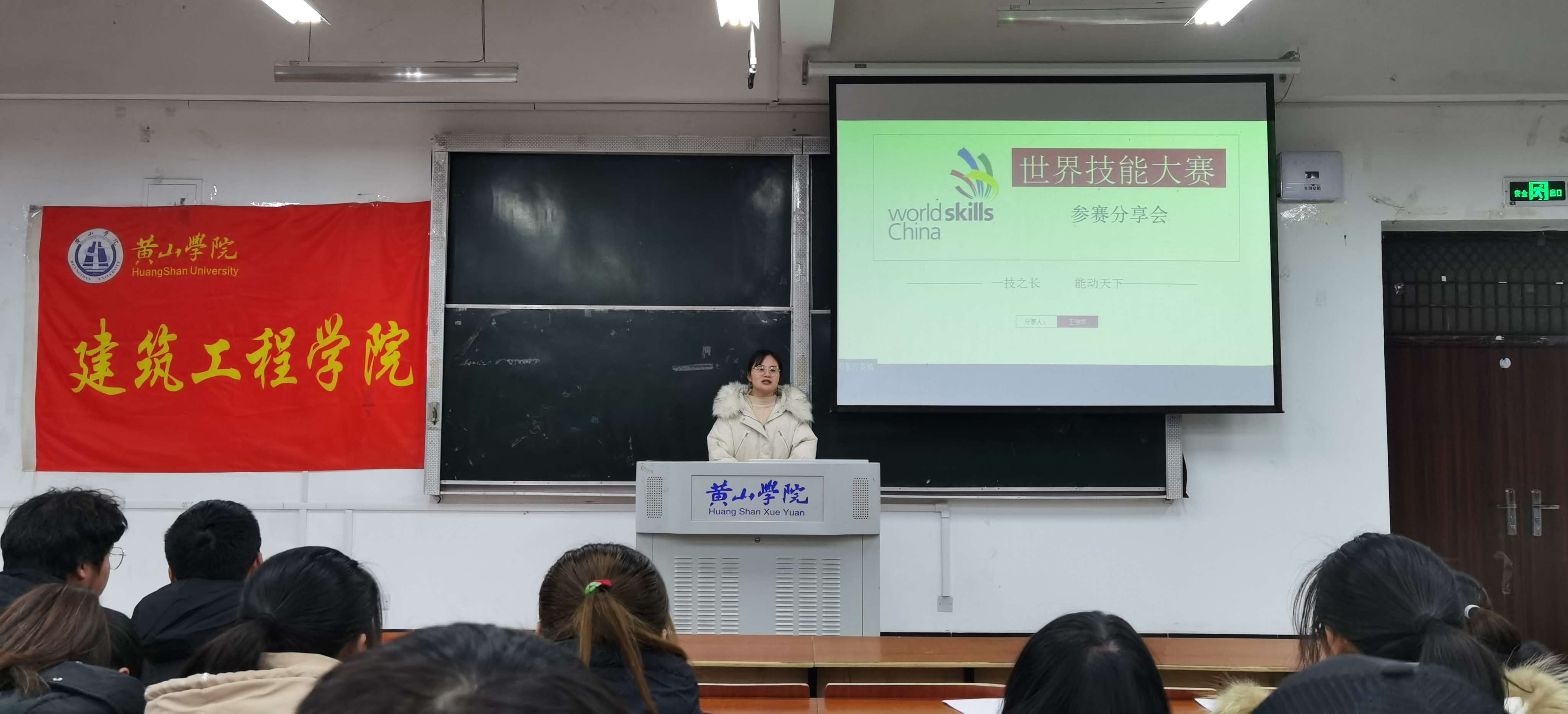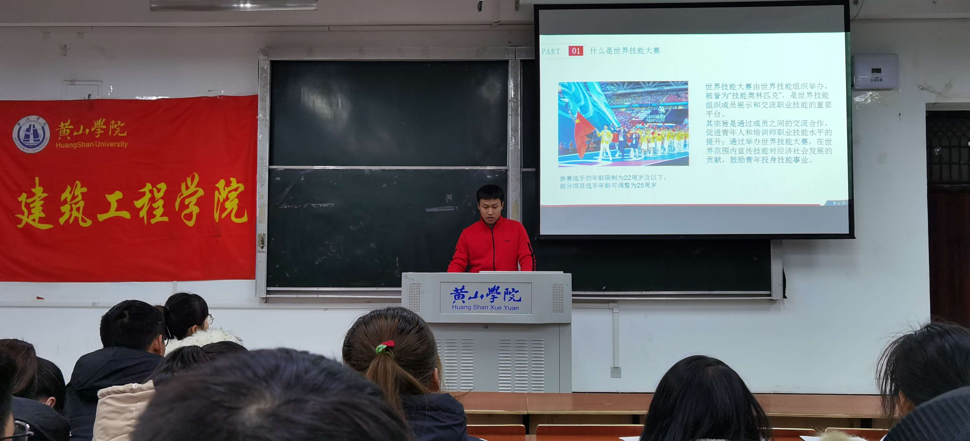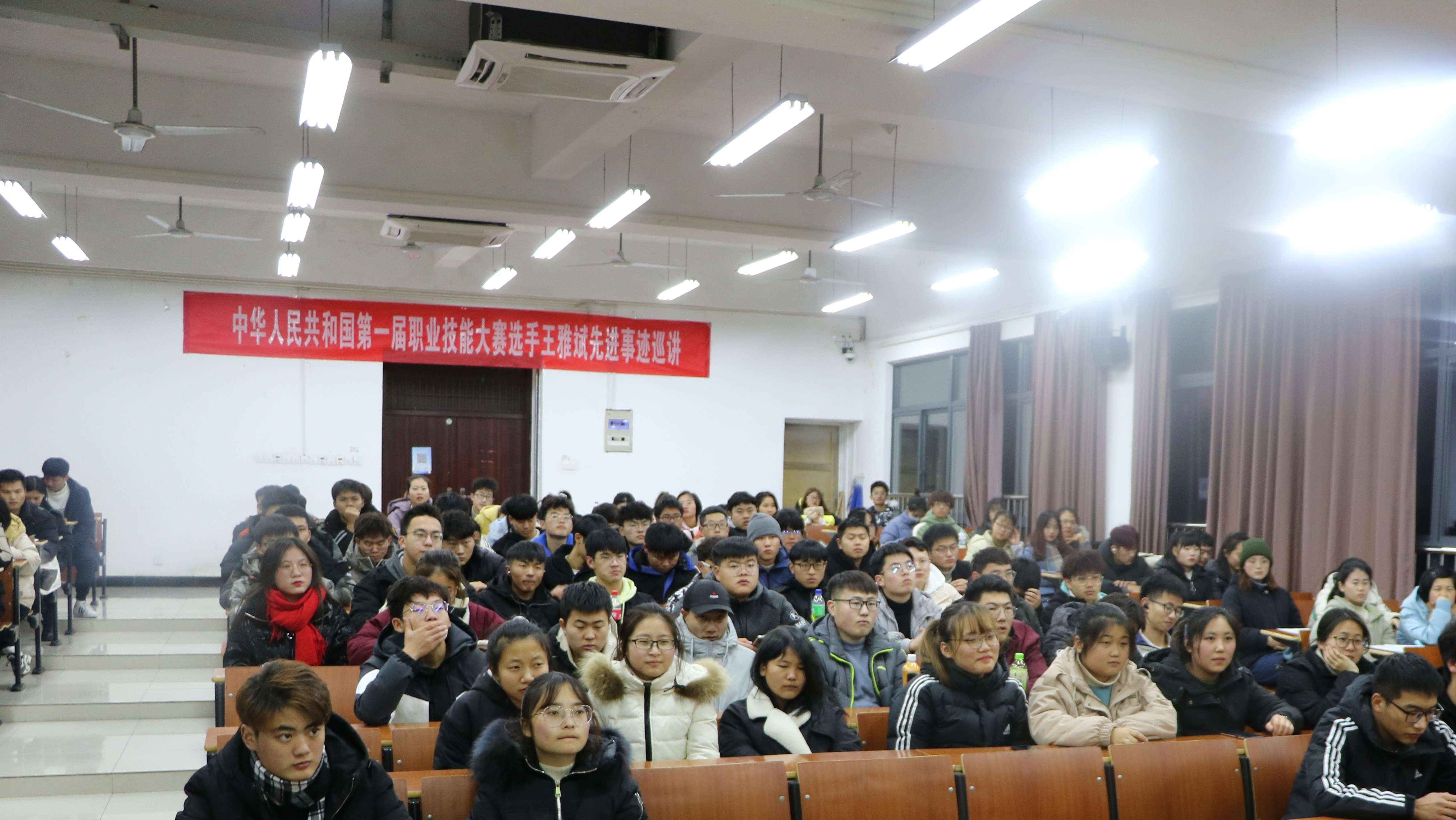 12月30日晚,太阳集团网站8722文渊楼1105教室举办中华人民共和国第一届职业技能大赛参赛选手先进事迹巡讲会主讲人本届大赛油漆与装饰项目金牌获得者——王雅斌同学。太阳集团网站8722团委副书记周莉莉以及学院两百余名学生参加宣讲会。