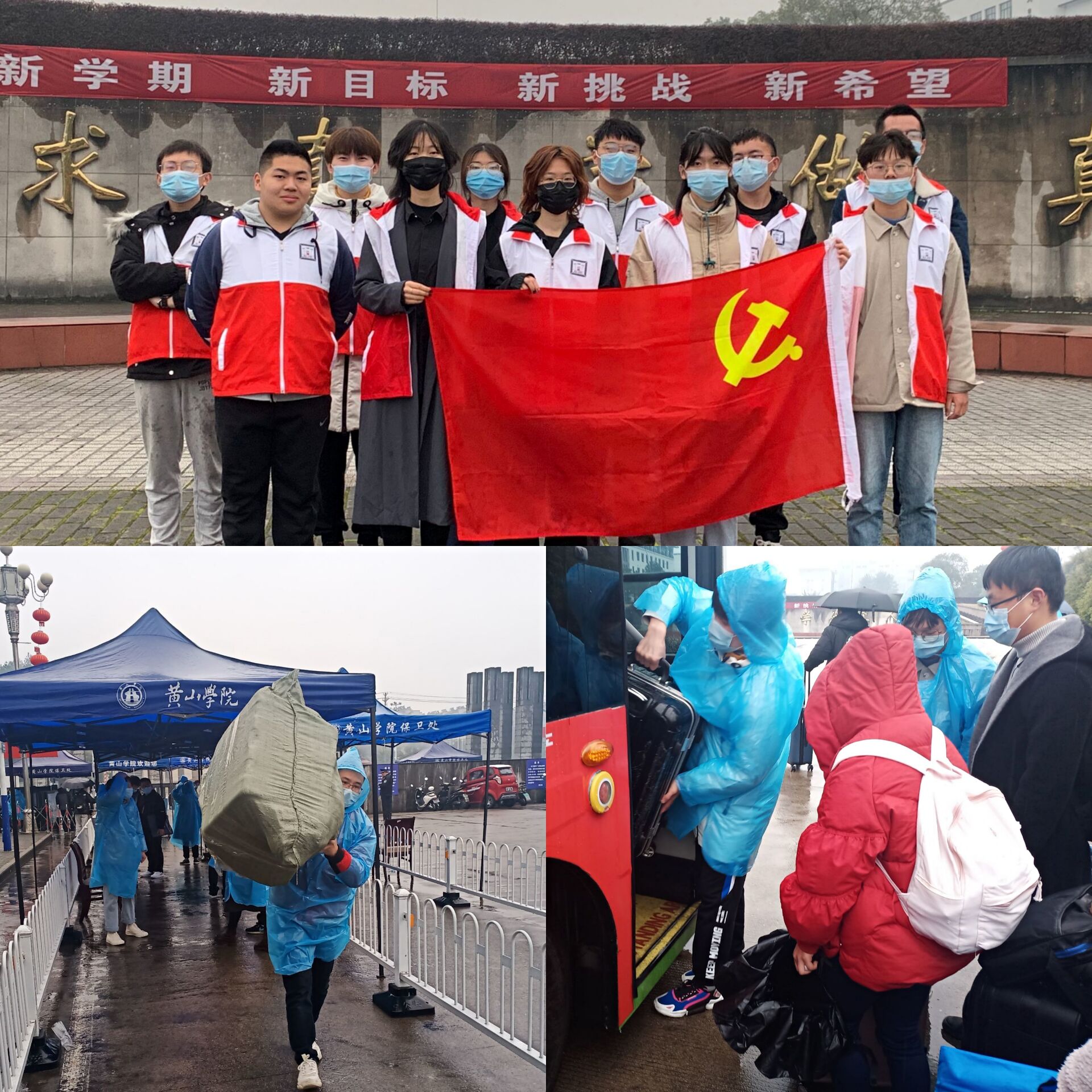 活动开始前半小时,怀揣着奉献的热情,志愿者们在院楼集合签到,领取志愿队服,佩戴好口罩,在17级党员周文军的带领下,志愿者们自主分成三组:第一组专门负责返校同学们的行李箱搬运,包括对雷锋精神的宣扬;第二组则是负责返校秩序的维护,贯彻习近平总书记关于疫情防控工作的重要讲话和指示批示精神,避免由于人流过于密集而导致的安全隐患;第三组则协助疫情防控工作员,帮助查看安康码、通行码。