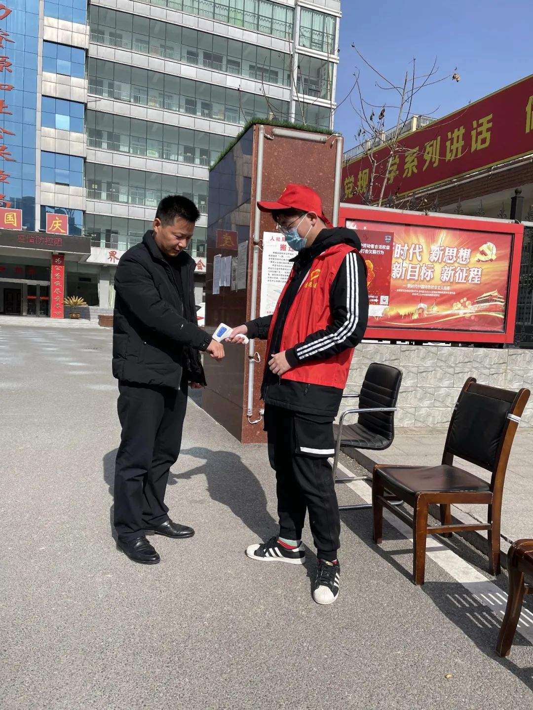 程继豪参与初入社区的人员登记和体温检测的工作,余文乐前往独居老人家中帮助老人,与老人进行聊天沟通,替老人舒缓忧虑情绪。同时还在卫生室门口提醒来往人员佩戴口罩,引导大家积极响应号召。