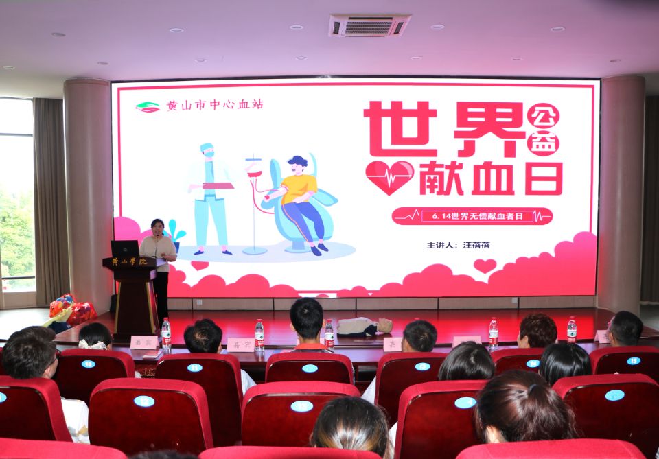 会上,首先全体观看了红十字会、黄山市中心血站以及建工院志愿者活动的宣传片。视频中的每个镜头,每一张志愿者的笑脸都印证了“点点滴滴热血浓,人道博爱处处情”的人间大爱精神。接着,黄山市中心血站科长汪蓓蓓详细的介绍了无偿献血的相关知识,现场解答了同学们疑问,并鼓励大家多奉献爱心,为无偿公益事业做贡献。