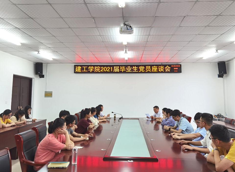 会上,范兴华首先代表建工学院党委和全体老师向建工学院2021届同学即将顺利毕业表示热烈的祝贺! 并对同学们提出了殷切希望:一是希望同学们加强党性修养,充分发挥党员的先锋模范作用,遵守疫情防控的各项制度,积极服务同学,带头做到文明离校;二是希望同学们坚定理想信念,志存高远,不忘初心,牢记使命,加强党史学习,从党史中汲取奋进的力量,努力争做优秀党员;三是希望同学们树立终身学习的理念,善于总结充实自我,用智慧点亮人生,用汗水书写辉煌;四是希望同学们树立正确就业观,不畏艰辛,争取在不同领域和岗位上做出更大成绩,实现人生价值;五是希望同学们要有长远规划,豁达开朗,学会适应社会,勇于担当。黄世平对毕业生党员表达了美好的期望与衷心的祝福,希望踏上新征程的学子们有理想、有激情,立足岗位、苦练本领当先锋,加强学习、提升修养做表率,充分展现党员的优秀品格和过硬本领,奏响青春旋律,书写人生华章。