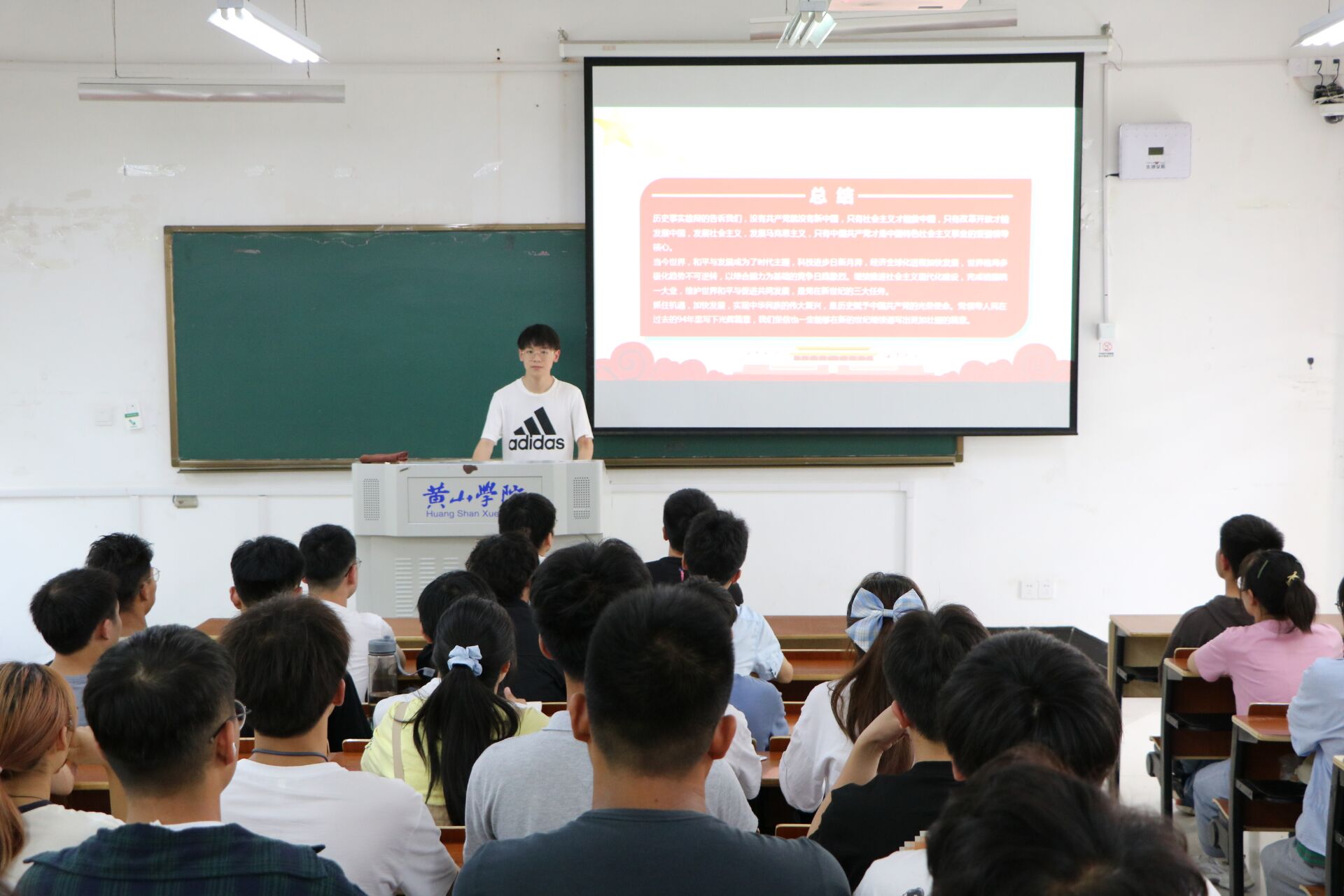 会上,学生会主席带领大家从改革开放的历史背景出发,围绕着“改革开放与文化自信”的主题,学习了一个民族、一个国家以及一个政党对自身文化价值的充分肯定的意义所在。