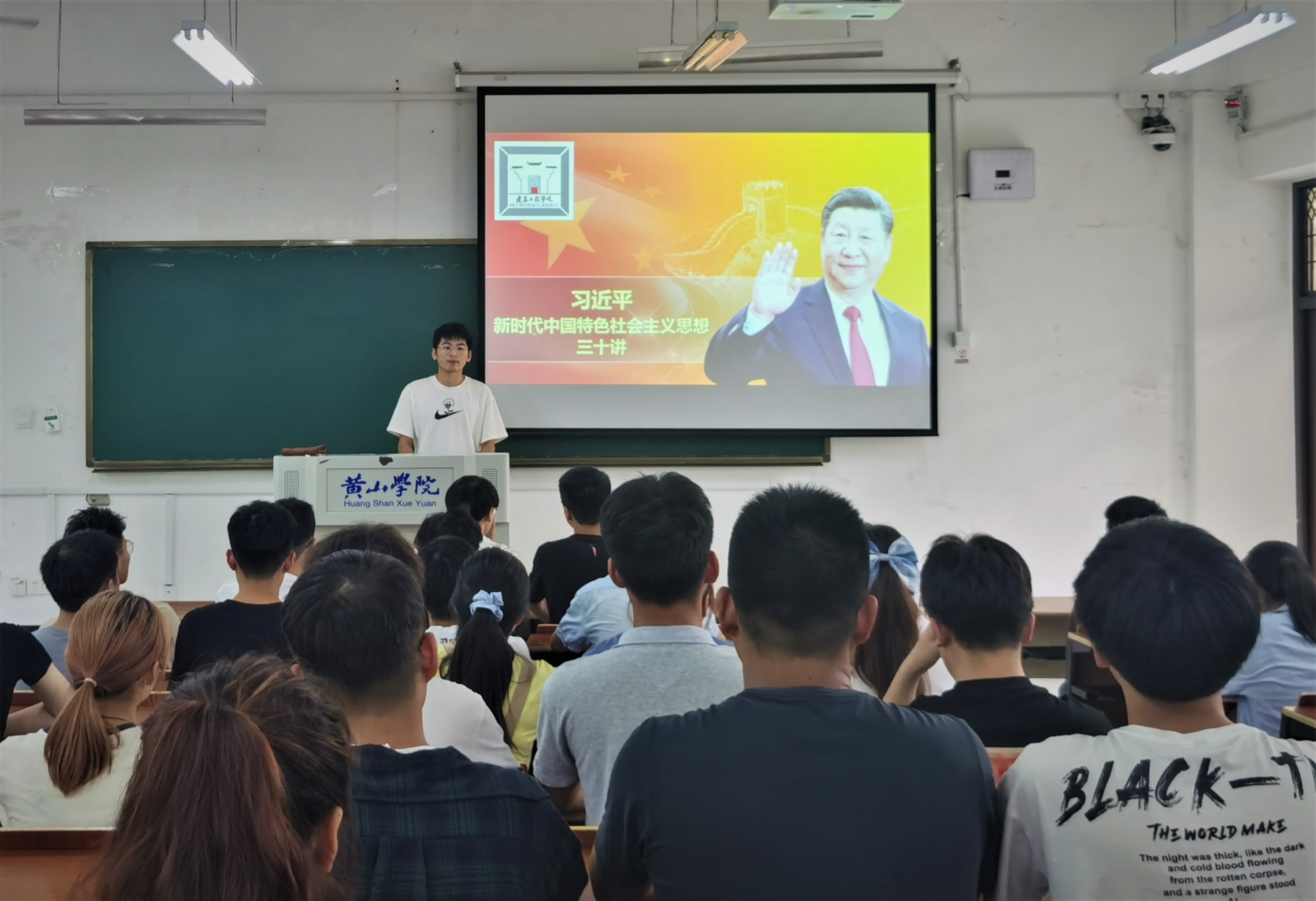 会上,学生会主席带领大家学习了习近平新时代中国特色社会主义思想,并围绕《习近平新时代中国特色社会主义思想三十讲》相关理论知识,结合相关内容与实践活动,讲述经典历史故事,贴近学生实际。最后,围绕立德树人的根本任务,引领鼓励广大青年学生以更积极的风貌,更优异的成绩献礼建党百年。