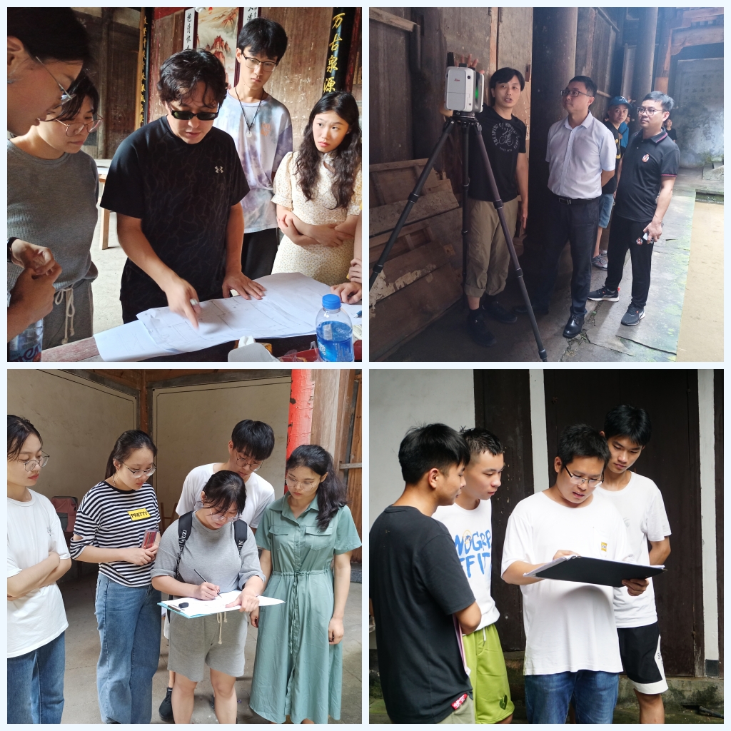 本次古建筑测绘联合实习以“徽州古祠堂”为测绘调研对象,采用传统测绘与三维激光扫描仪测绘手段相结合的测绘方法,通过绘图重点使同学们深入了解徽州祠堂建筑的总体布局、空间形式及建筑构造,通过三维激光扫描仪获得建筑的精确数据,两校教师联合进行了现场指导。