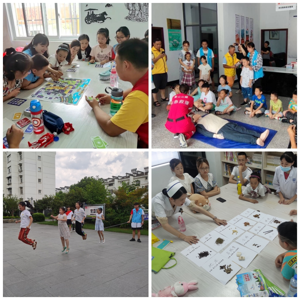 本次活动分为四个主题:开展防疫知识科普讲座,和小朋友们一起了解了新冠肺炎,新冠肺炎传播的途径,增强小朋友们的自我保护意识以及安全卫生意识;开展“风吹稻香,缅怀国士”和红色地标打卡活动,由志愿者介绍的国士“袁隆平”相关事迹,通过了解袁隆平院士的事迹,小朋友们了解了杂交水稻等相关知识,也学会了珍惜粮食;开展绘画课程和创意折纸活动,让孩子们了解绘画,教小朋友们一些简笔画和折纸技巧,还和小朋友们开展了趣味体育活动;开展暑假儿童防溺水安全教育宣讲活动,歙县山越救援队行政部张淑贞通过讲述多个溺水事件,让孩子们提高安全意识,学习自防自救技能。
