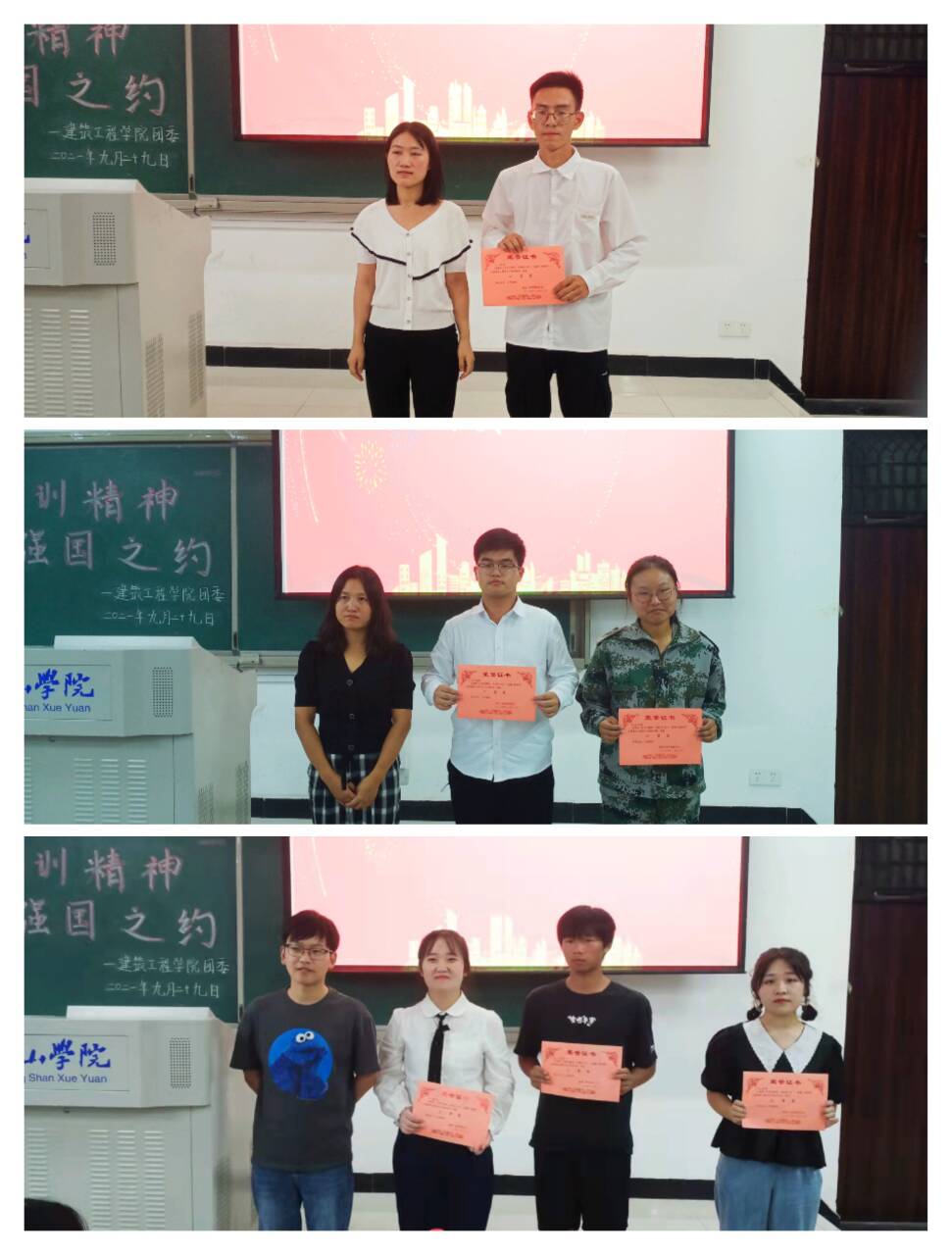 经过激烈的角逐,21建筑孙涛、21建筑赵璇、21城规张锐兴等六名同学脱颖而出,由评委老师们为获奖者颁奖并合影留念。