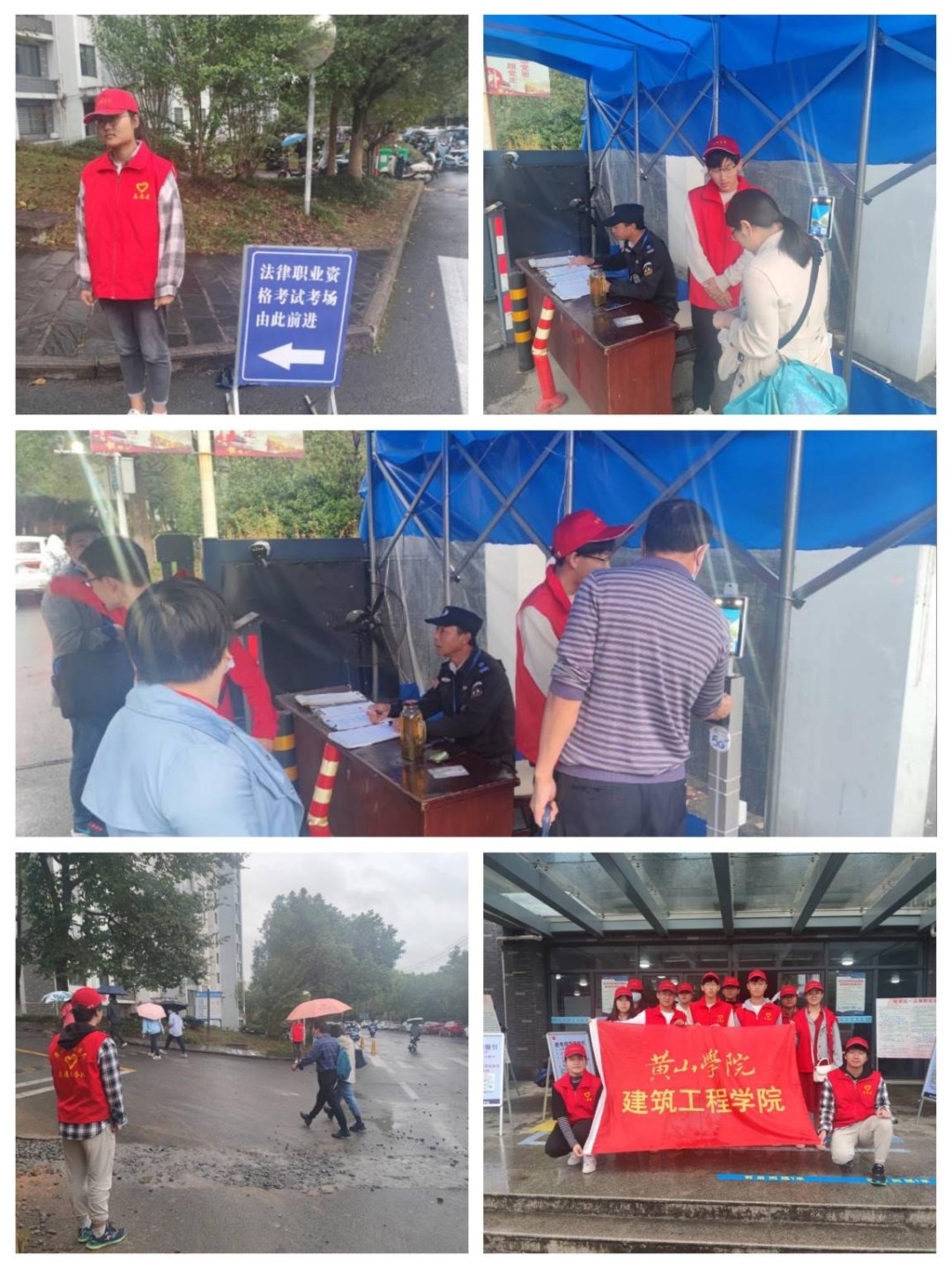 虽然下着雨,但志愿者们不畏寒风,耐心负责,以饱满的热情推动着司法考试道路指引工作的进行,受到了广大考生的高度肯定,圆满完成了志愿活动。