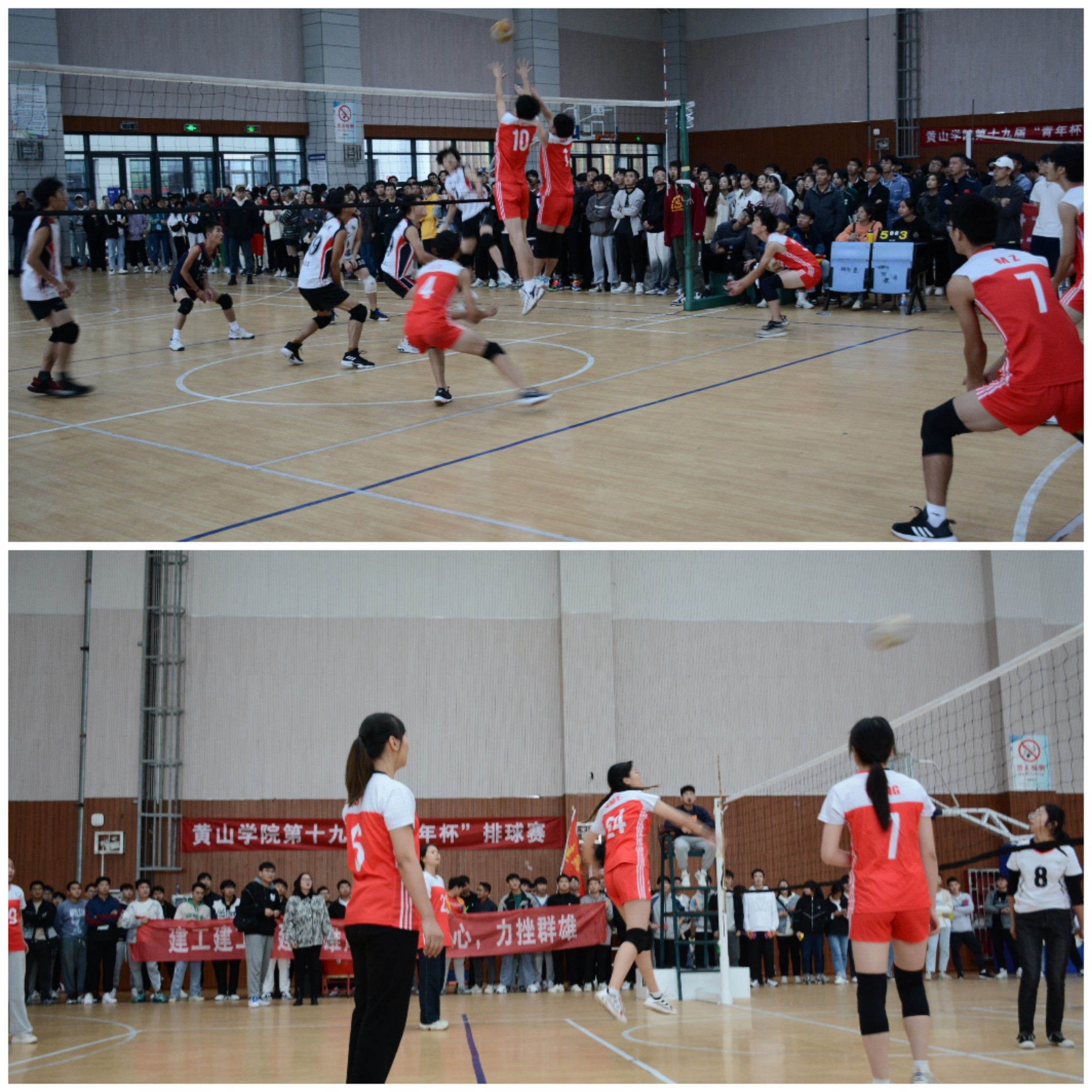决赛场上,队员们排好站位,身体下蹲,为比赛做好预备工作。随着一声哨响,双方球员迅速进入状态,充分发挥出自己的个人技术及战术配合,为各自队伍赢得分数。发球、垫球、传球、扣球、拦球,赛况逐渐白热化,即使落后一局,我们的队员依旧保持镇定,坚定信念:只要球不落地,就还有机会!又是一番激烈的角逐,滴滴汗水,伴随着矫健的步伐,挥洒在排球场上。最终,建工院男排勇夺亚军,女排也在此次比赛中发挥出不错的水平,名列第七。