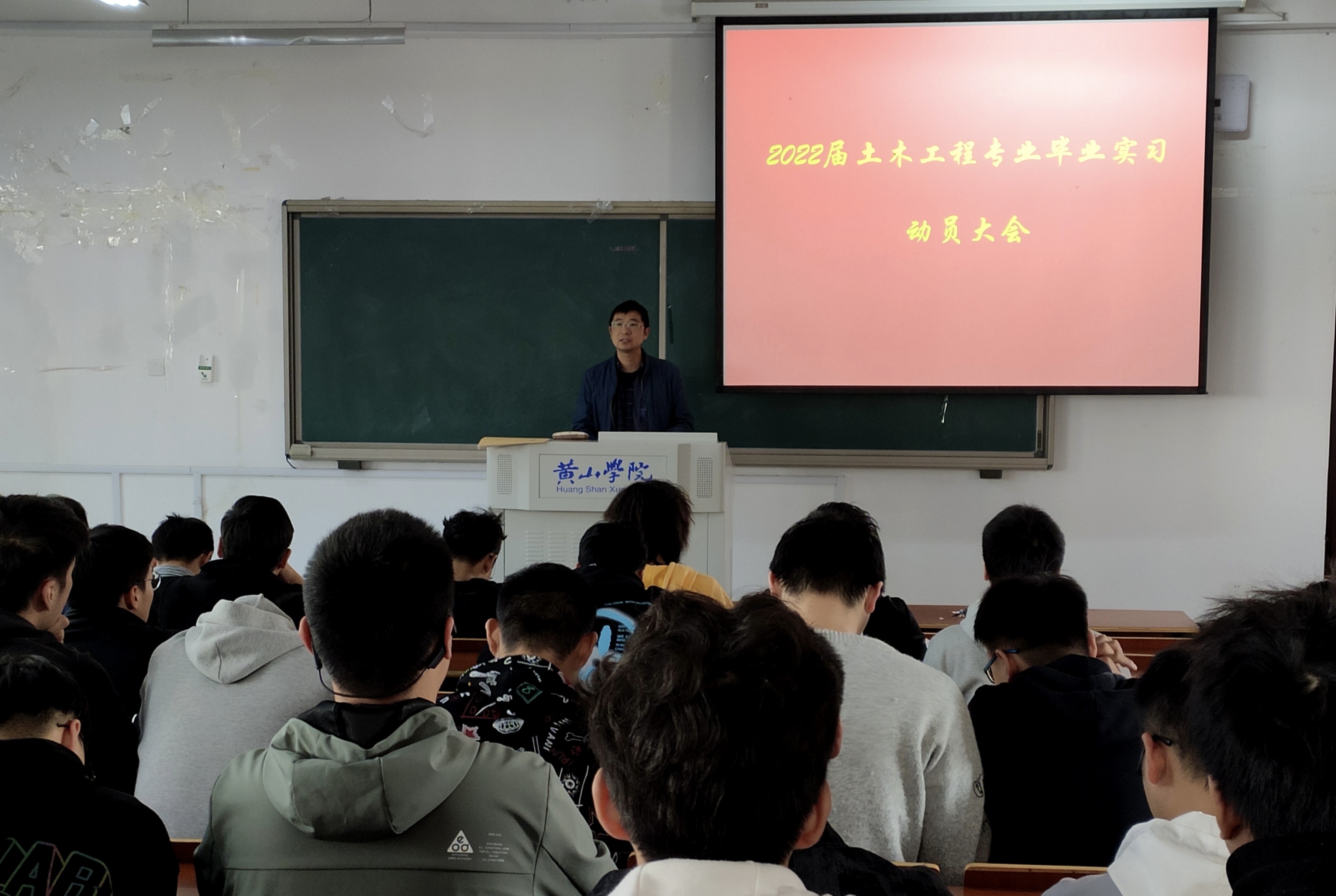 黄剑对实习期间需要完成的相关材料和成绩考核提出了要求,他强调毕业实习是学生完成专业课程后的重要实践性教学环节,是专业教学计划的重要组成部分,他希望毕业生们通过毕业实习为后期的毕业论文和毕业设计的撰写打下坚实基础,期望大家珍惜实习机会,脚踏实地、虚心学习,从中获得更多的实践经验与知识。