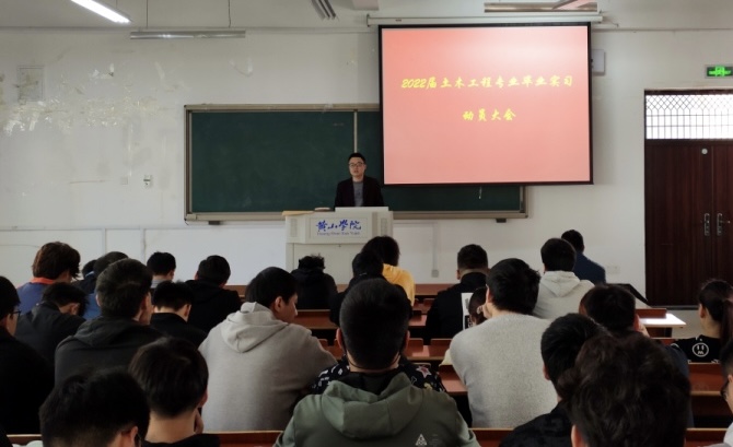 10月29日上午,太阳集团网站8722在文渊楼1305、1306教室召开了土木工程、工程造价专业毕业实习动员大会。副院长邓林、土木工程专业教研室主任曹海、工程造价教研室主任黄剑、毕业班辅导员郑藤及2022届土木工程、工程造价专业毕业生参加了会议。会议由专职辅导员郑藤主持。