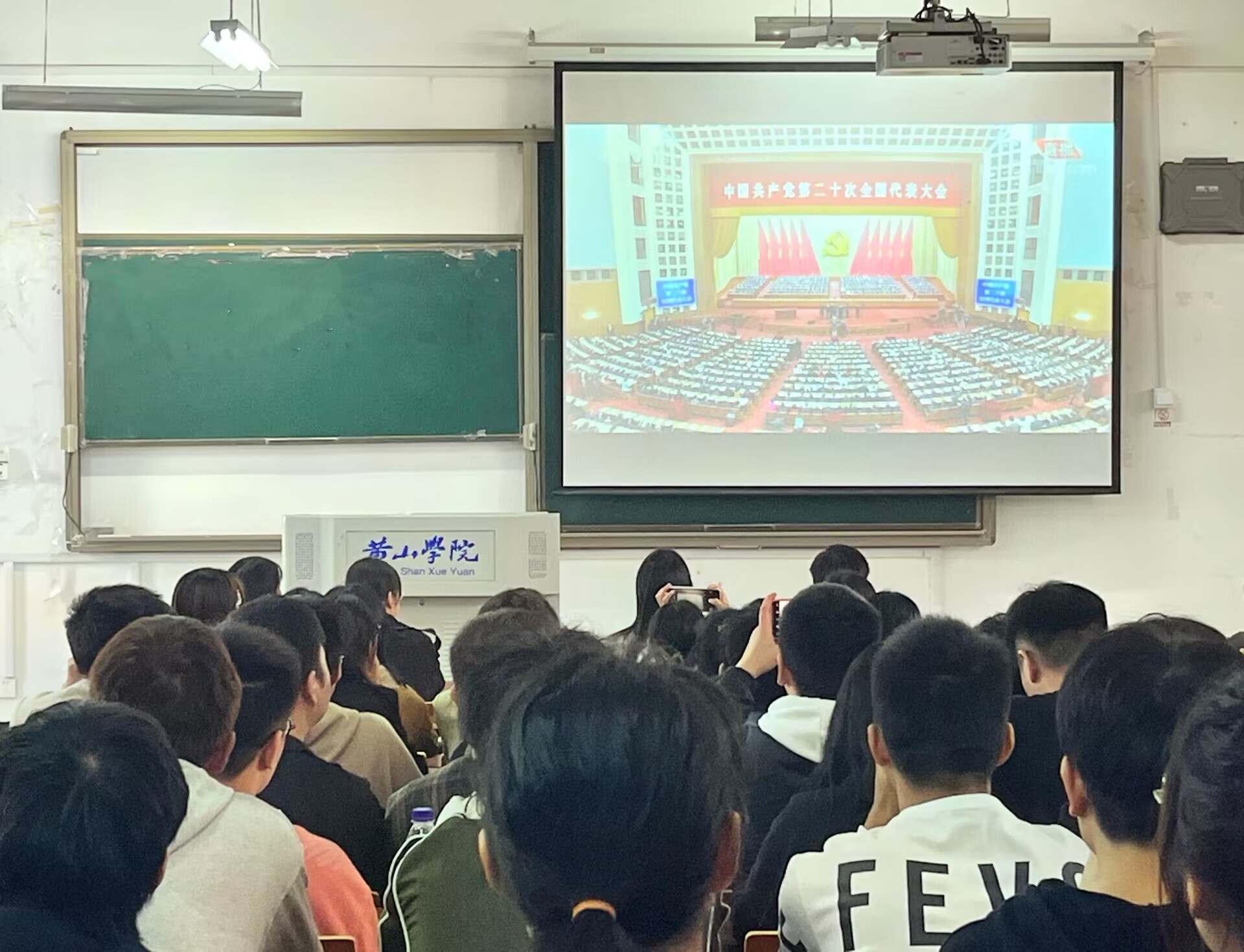 2022年10月16日,在这个秋风送爽的季节里,中国共产党第二十次全国代表大会在全国人民的期盼中召开了。为进一步宣传党的路线方针政策,增强广大师生党员的党性修养,太阳集团网站8722在校党委领导和部署下,组织了教工党员及入党积极分子、党外人士代表、学生党员、第58期入党积极分子培训班学员、团学骨干等师生,分别在建工学院会议室、文渊楼多媒体教室等地3个不同会场集中收看党的二十大开幕会盛况。