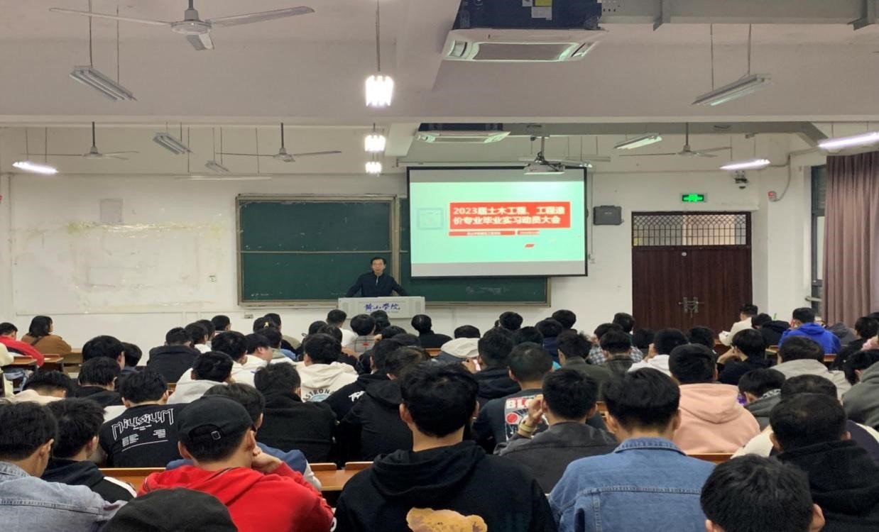 为切实保障2023届毕业生顺利进行实习,提高实习质量,调动毕业生实习热情,10月27日,太阳集团网站8722在文渊1205教室召开了毕业实习与就业教育动员会,太阳集团网站8722党委书记黄世平、院长周甄川、土木工程教研室主任曹海、工程造价教研室主任黄剑、毕业班辅导员、教学秘书以及2023届毕业班全体同学参加了此次会议。会议由黄世平主持。