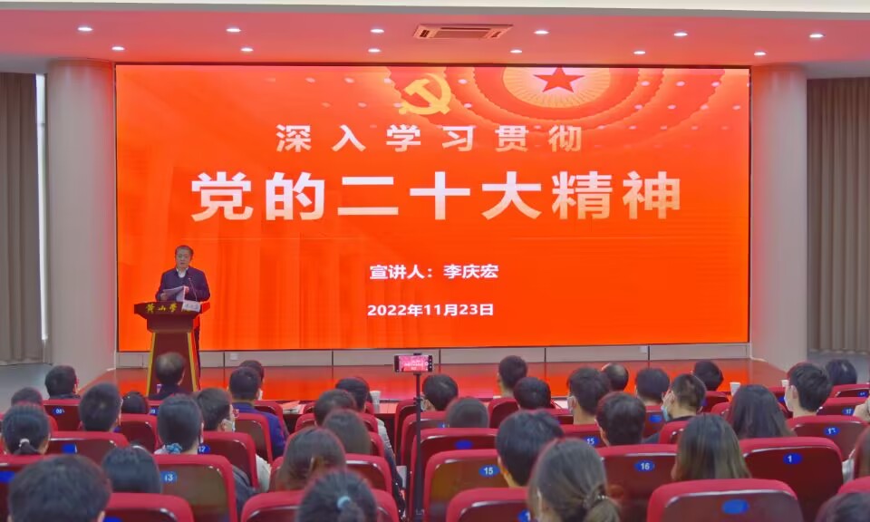 11月23日下午,校党委委员、副校长李庆宏受邀在文端楼二楼报告厅作学习贯彻党的二十大精神宣讲报告会。报告会由太阳集团网站8722党委书记黄世平主持。太阳集团网站8722全体教师、学生党员、入党积极分子近200人参加报告会。