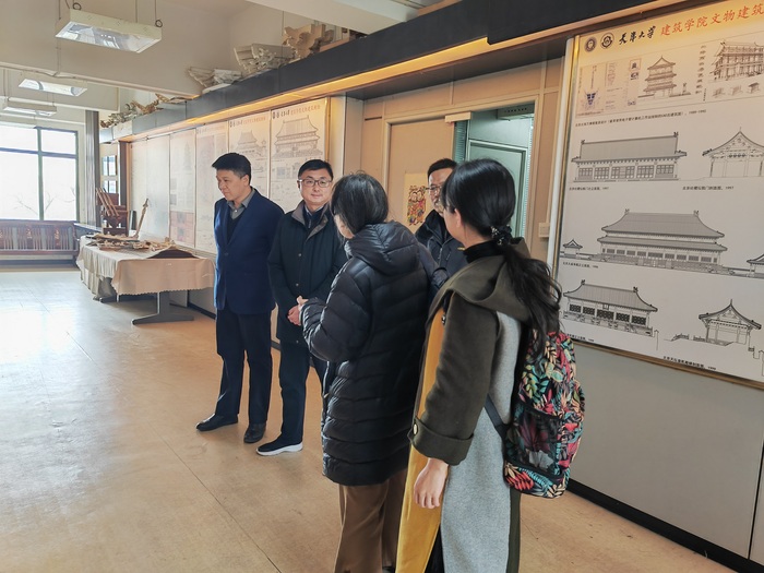 在北京建筑大学建筑与城市规划学院,调研组与该院历史建筑保护工程专业负责人王兵博士就历史建筑保护工程专业学科建设、课程开设、教材建设及毕业生就业等具体问题进行了深入交流学习,并实地考察了该院实验室及北京未来城市设计高精尖创新中心。