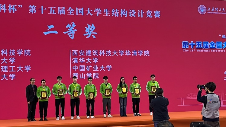 3月22日至26日,由全国大学生结构设计竞赛委员会主办、太原理工大学承办的“盈建科杯”第十五届全国大学生结构设计竞赛在山西太原举行,本届竞赛共有来自全国31个省(市、自治区)514所高校的1209支代表队参加。其中来自清华大学、浙江大学、同济大学等110所高校的111支队伍共计333名学生晋级国赛。我院派出由李琦、韩根发、李杰等3人组成的队伍代表安徽省参赛,现场制作的结构模型获得二等奖的好成绩,取得我校在该项赛事的历史性突破。