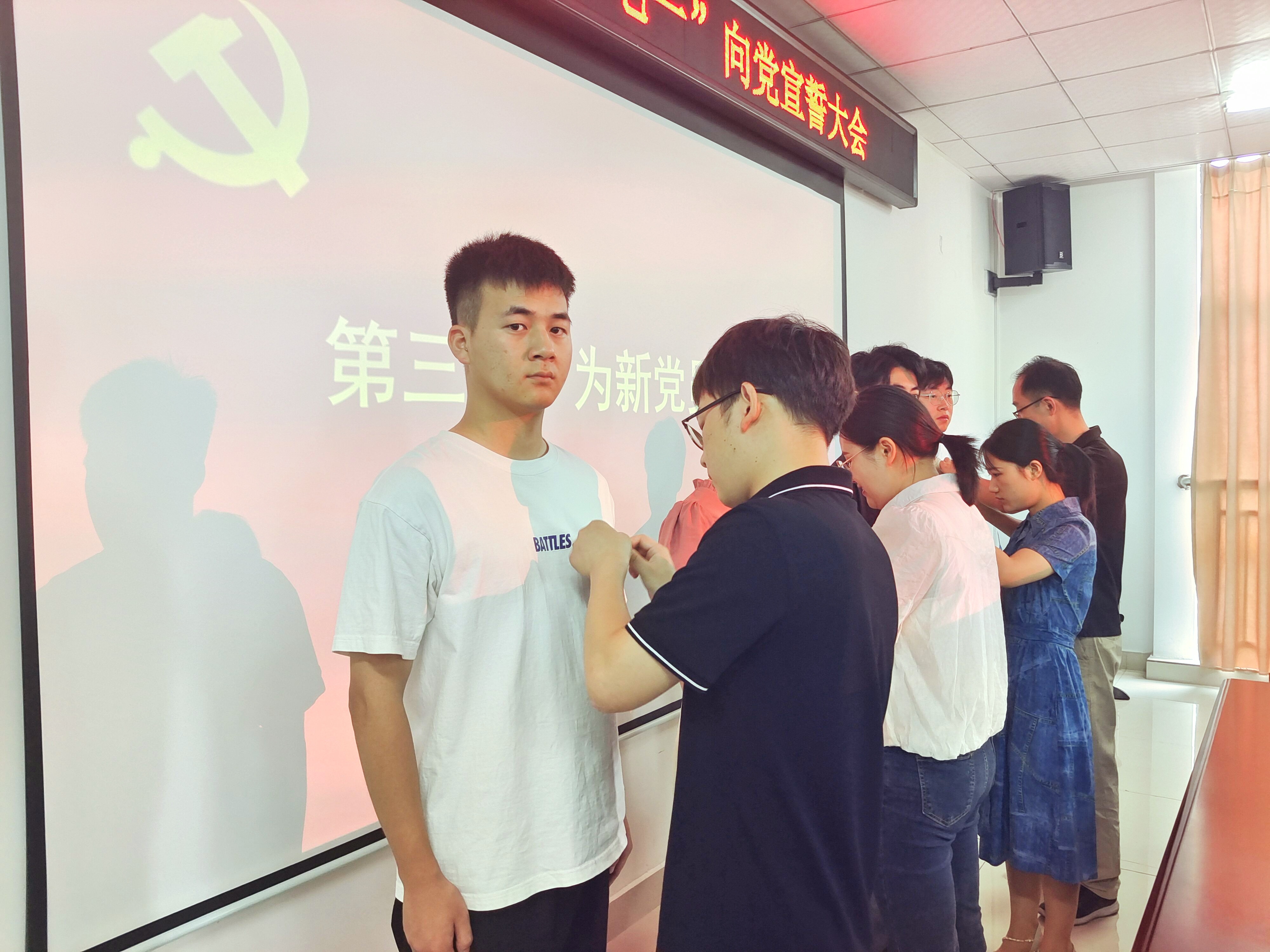 在新党员代表王晨敏发言表态后,黄世平书记发表了讲话。他指出,在“七一”之前举行宣誓仪式意义重大,这既是党员同志入党的一个必要环节,也是太阳集团网站8722党委对广大党员开展党性教育的重要举措。新党员入党后,要牢记宗旨,努力践行入党誓词;要提高党性修养,强化为人民服务的意识;要认真学习,不断提高自身能力;要努力拼搏,充分发挥共产党员的先锋模范带头作用。