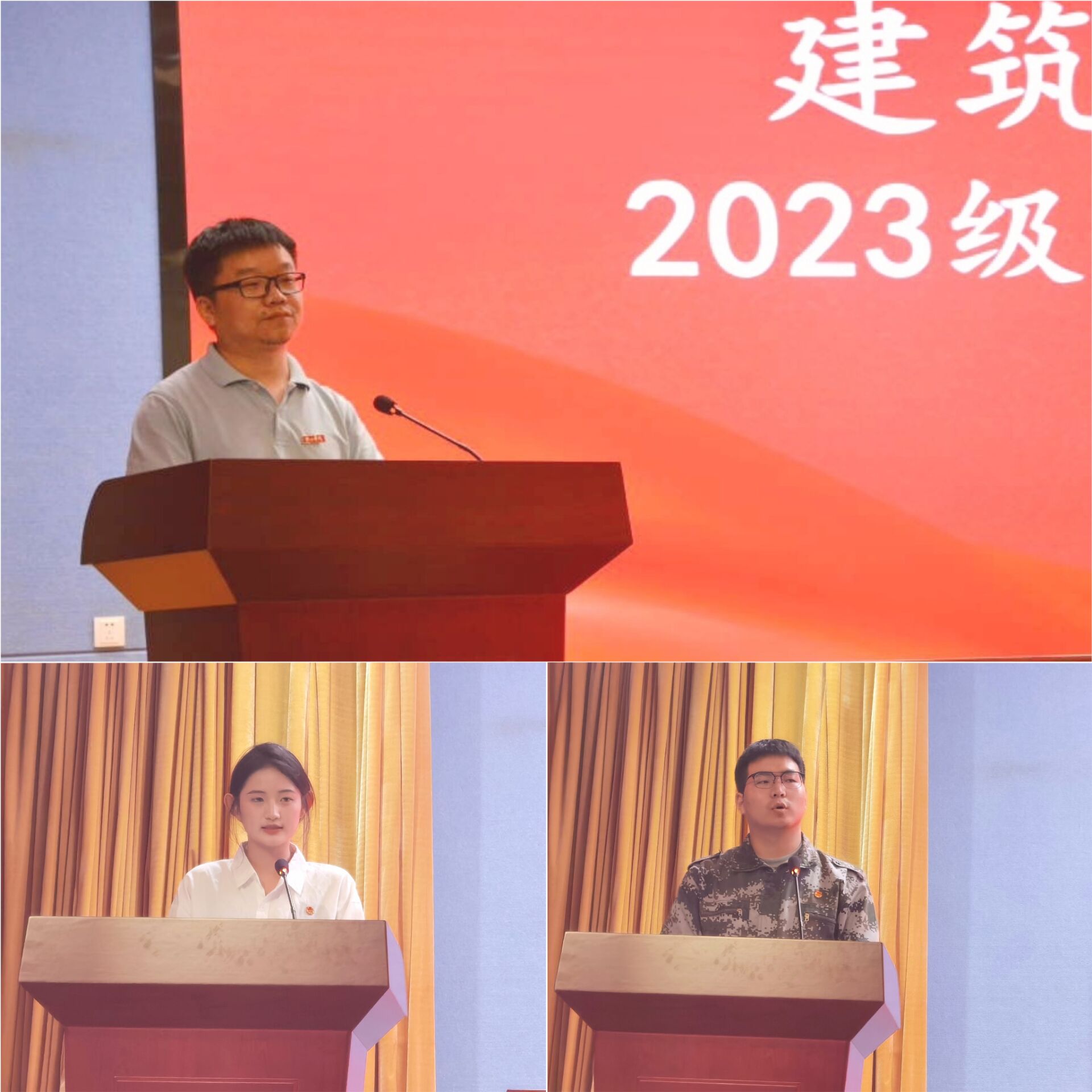 随后,教师代表黄剑老师、老生代表22土木二班李紫轩同学、新生代表23建筑班胡登程同学分别上台发言。