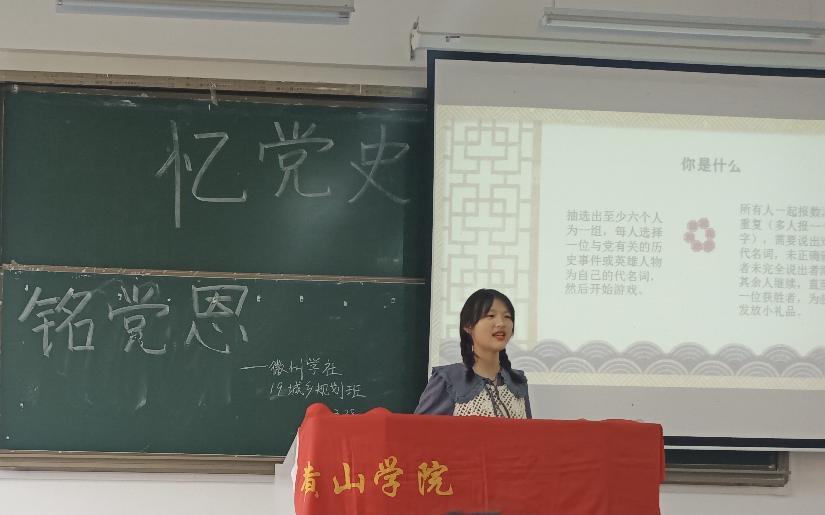 历史总是在一些特殊年份给人们以汲取智慧、继续前行的力量,3月28日19城乡规划班和徽州学社于2206教室开展了“忆党史,铭党恩”为主题的活动。
