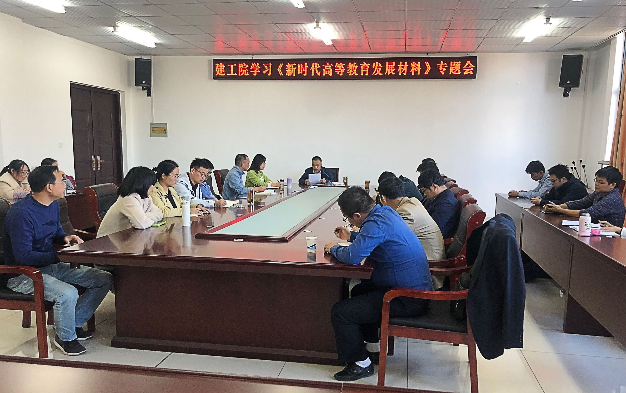 11月18日下午,太阳集团网站8722在文启楼三楼会议室组织全院教师集体学习《新时代高等教育发展系列论述》专题会,学习会议由党委书记范兴华主持。