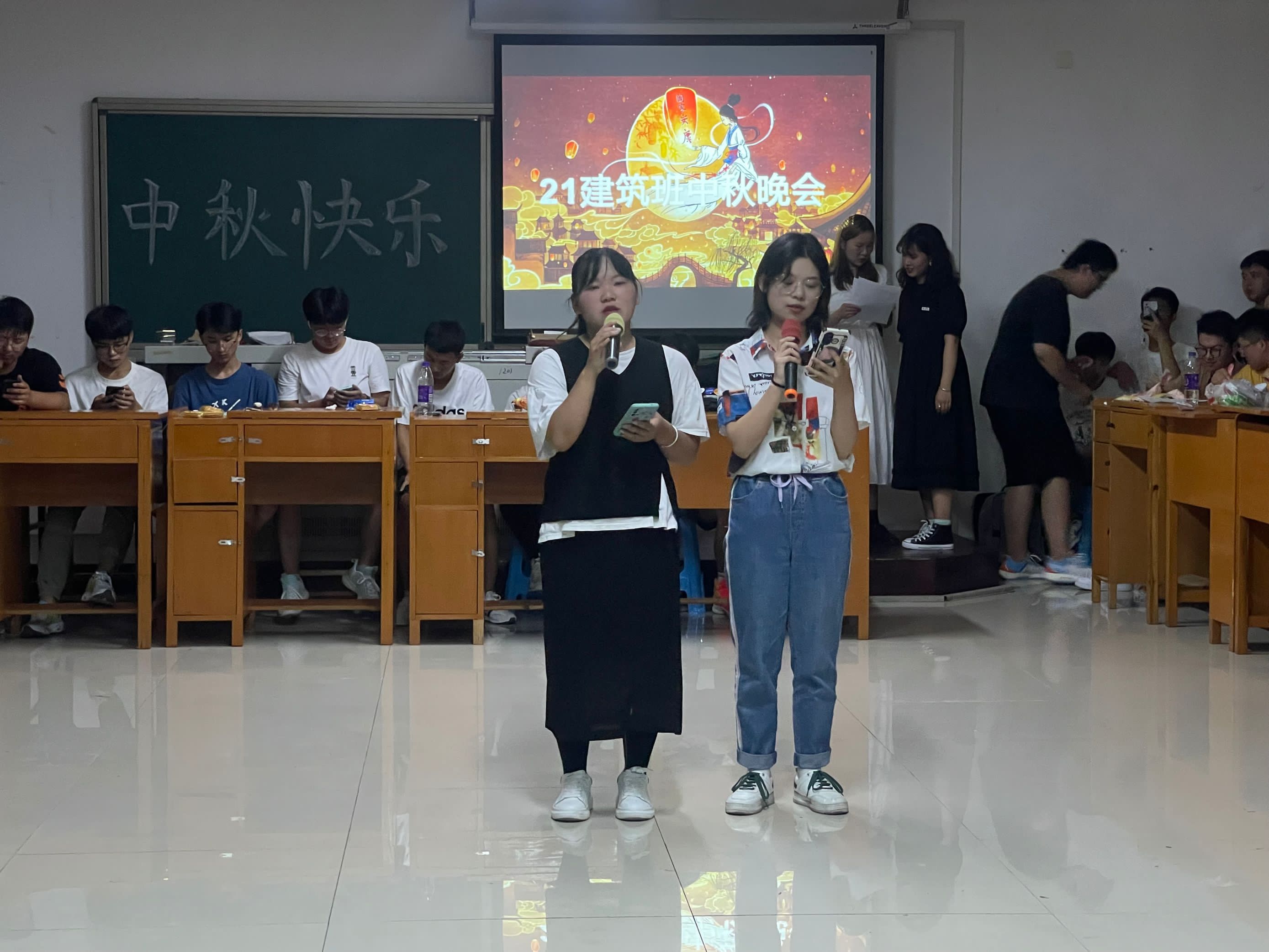 晚间,由建筑学班级主办的中秋晚会随着夜幕降临拉开了帷幕。晚会邀请了其他专业的同学参加。在晚会中,精彩节目接连不断,歌曲表演,吉他弹唱、魔方盲拼等节目赢得阵阵掌声。节目间隙,晚会特意安排小游戏,让更多的同学参与到晚会中,在欢声笑语中,拉近了同学们的距离,实现了关系“破冰”。