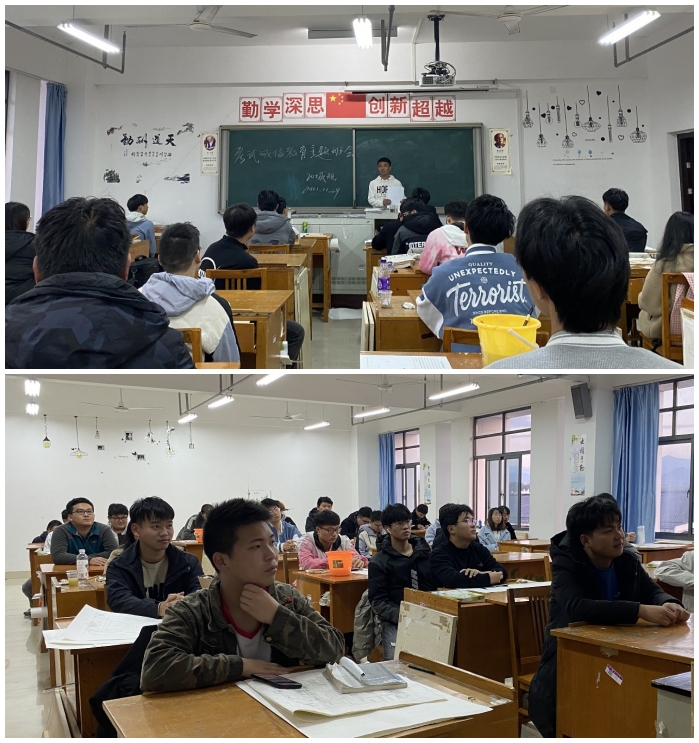 11月29日,为提高同学们的思想觉悟,培养学生的诚信品质, 20城乡规划班全体同学在文峰楼6606教室参加会议。学习委员对开学到现在同学们状况做出了总结,倡导大家课下多多复习老师所说的知识点,鼓励大家多多向90分迈进。对考试作弊,也说出了其中非常严重的后果。