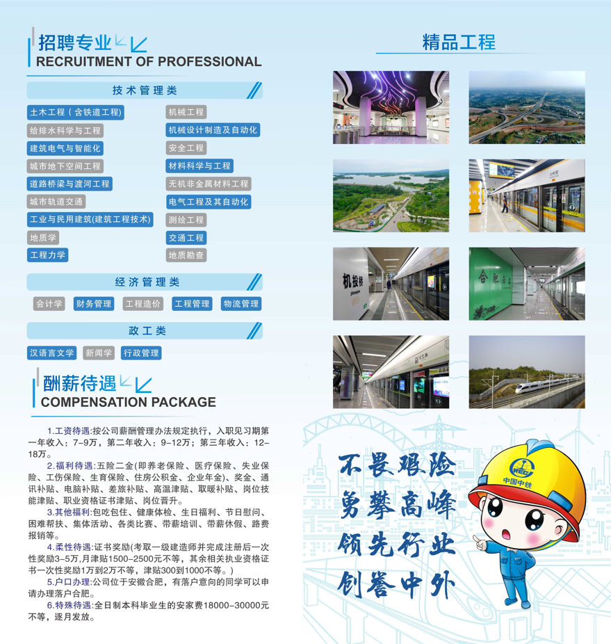 3、从事专业领域:以城市轨道交通工程(地铁)为主专业,以市政工程和房建工程为辅助专业。