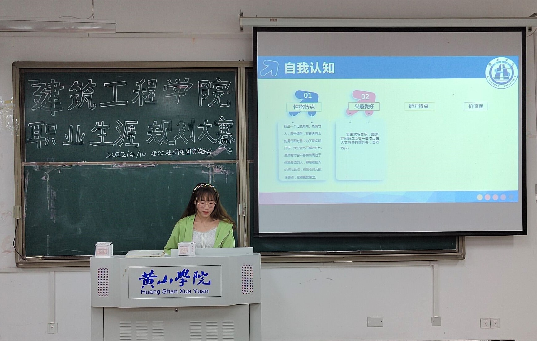 比赛过程中选手们通过PPT讲解的方式,从自我认知、发展方向、目标职业资讯、目标计划、具体执行计划等几个方面进行阐述,分享了自己规划的职业成长路径以及长短期规划。其中来自20城规班的孙芷娴同学结合专业特色、自身性格、兴趣、技能、价值观维度出发,表现尤为出色,获得了本次比赛的一等奖。