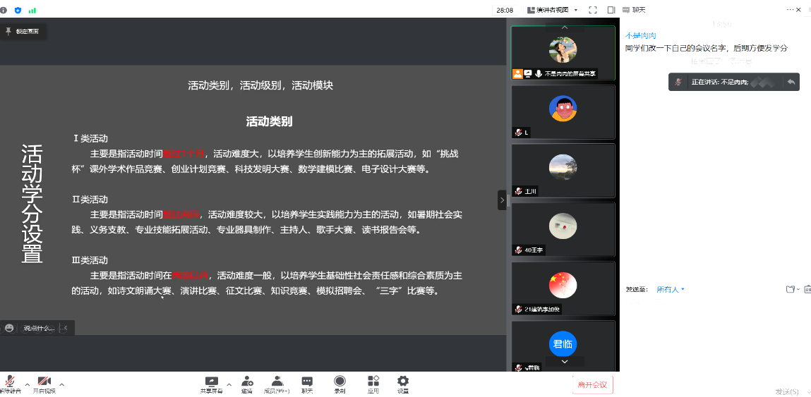 本次会议,以线上直播的形式由第二课堂负责人对“到梦空间”app的相关内容进行讲解,并针对同学们的疑问进行了逐一解答。其中,对活动申请表的更新以及拉黑设置的处理,做了更加详细的解说。同时,利用线上调查问卷的形式对建工院的相关活动和“到梦空间”app的使用情况进行了调查,以便日后更好的改进和开展活动。