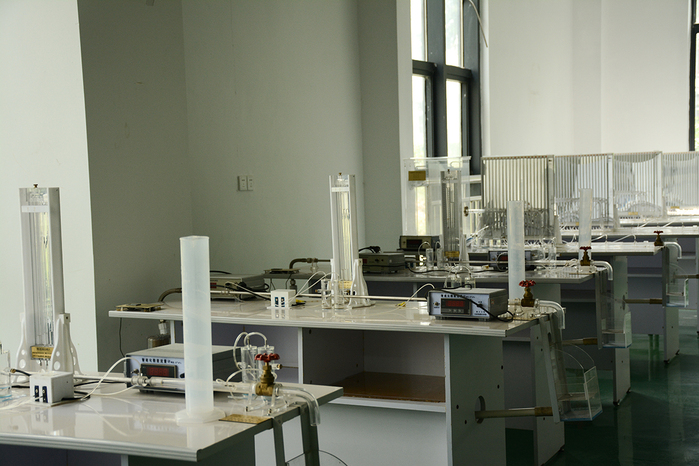 流体力学实验室2012年建成。建成后的实验室主要满足土木工程学科的教学实验。实验室现有静水力学实验仪、自循环雷诺实验仪、自循环孔口与管嘴实验仪等多台仪器设备,可以完成流体静力学实验、雷诺实验、毕托管测速实验等。这些实验可以帮助学生提高基本专业技能,提高科学认知水平与动手实验能力。