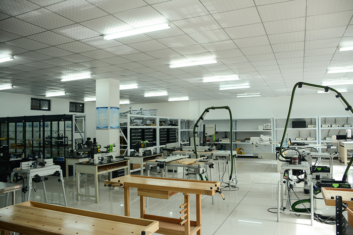 主要的仪器设备有便携式圆锯、便携式曲线锯倒装系统、木工台锯、圆型偏心振动打磨机、木榫连接开槽机、刀片雕刻机、激光雕刻机、大功率铣机、精密裁板锯、自动压刨、多功能3D打印机。