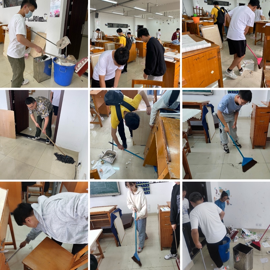 在辅导员的带领下,同学们认真学习“五一”劳动节的来历、含义以及社会各行各业的劳动模范的事迹。为了让同学们充分参与到劳动中去,各班级纷纷开展了“卫生大扫除”活动。打扫过程中,同学们以积极的态度、饱满的热情、以实际行动认真地完成教室的清扫。