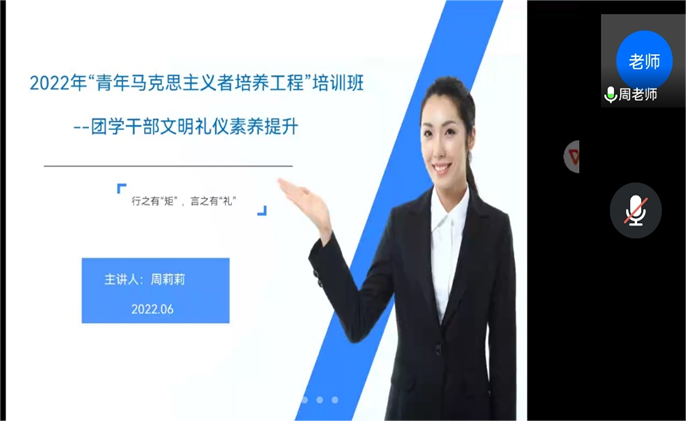 为深入实施青年马克思主义者培养工程,引导青年学生做新时代中国特色社会主义的践行者,6月23日至6月28日,太阳集团网站87222022年“青年马克思主义者培养工程”培训班开班并举行线上系列主题学习活动,“青马班”成员共80余人在线参与学习。