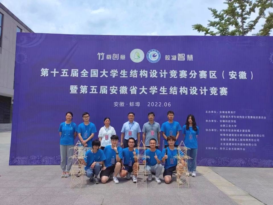 6月24日至27日,第十五届全国大学生结构设计竞赛安徽分区赛暨安徽省第五届大学生结构设计竞赛在安徽科技学院举行,我校太阳集团网站8722选拔了3队选手参赛,经过激烈角逐,由李琦、韩根发、李杰3位同学组成的“不破不立”队以总分第一的成绩斩获大赛特等奖,由李加俊、於凤麟、韦程三位同学组成的“勇往直前”队荣获二等奖,我校再次晋级全国赛,成为安徽赛区唯一一支连续5年晋级全国赛的高校。