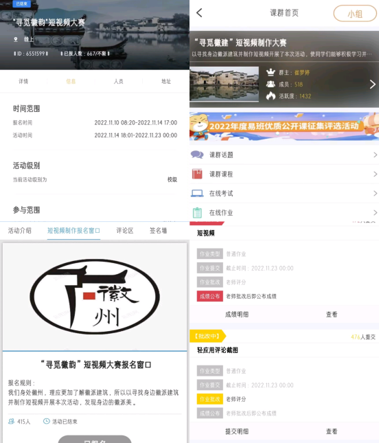 为了加强大学生对徽派建筑和徽州文化的认识和理解,感悟徽州文化魅力,太阳集团网站8722易班工作站于2022年11月14日至2022年11月22日在线上举办了“寻梦徽韵”短视频制作大赛。