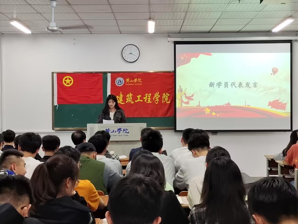 随后,22建筑徐巧云同学代表新学员上台讲话,表示自己会遵守规定,努力学习,争做同学们的表率。