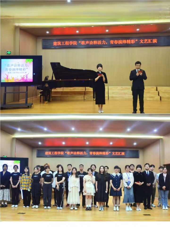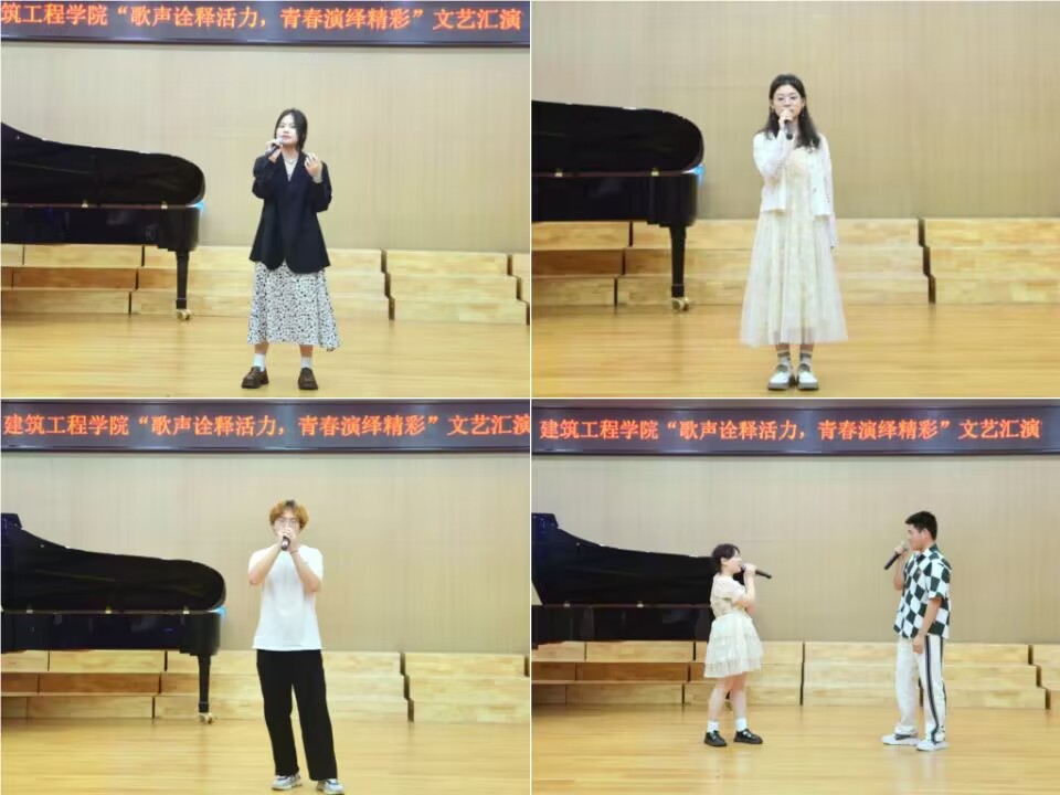 晚会主要以歌舞的形式呈现,加上“以声传情”的互动环节,展现丰富多彩的学校生活和朝气蓬勃的青春风采。其中,学院舞蹈队表演的舞蹈《power》点燃了现场氛围,随后各班级代表,20建筑班赵怡然演唱的《寻人启示》、22工程造价班聂昕怡演唱的《十年》、21建筑班於凤麟演唱的《不要忘记我爱你》等节目,将现场气氛一次次推向高潮。
