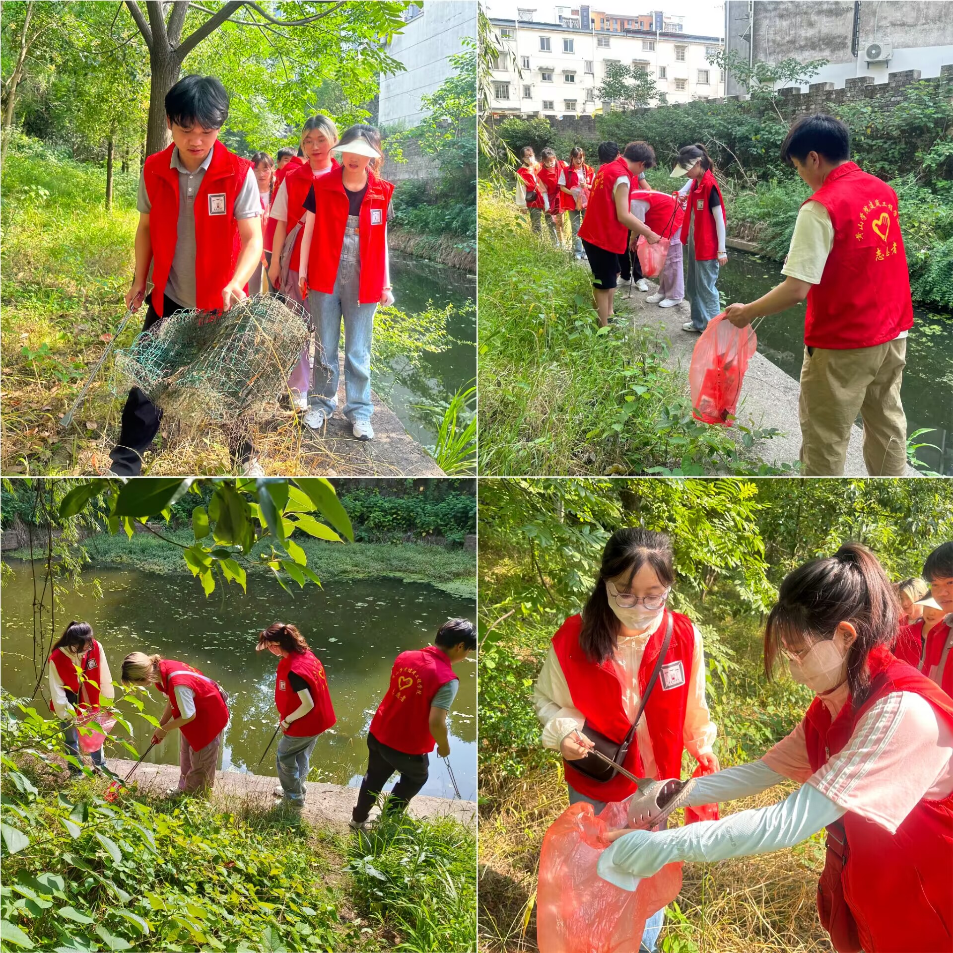 活动初始,志愿者们来到黎阳街社区党群服务中心,帮助社区工作者完成社区监督一点通的工作,志愿者们一对一服务,认真负责按照要求完成监督。紧接着,志愿者们穿上红背心,一手拿火钳一手拎垃圾袋,跟随社区负责人前往河道,开展巡查河道、清理河道垃圾志愿服务活动,助力文明典范社区创建。志愿者们穿过灌木,集体行动,分工合作,沿着河道两边进行垃圾清理整治,一边捡塑料袋、烟头、饮料瓶等各种生活垃圾污染物,一边对垃圾进行可回收和不可回收等分类处理。大家配合默契,认真清理捡拾,经过一个小时的努力,河道及沿岸垃圾全部清理干净,河道焕然一新。活动中,大家不怕脏、不怕累,在劳动中寻乐趣,即使汗流浃背,但当看到清理后的成果时,大家依然充满笑容。在清理垃圾的同时,志愿者们还向河道附近市民群众宣传保护河道环境的知识,并对一些市民的不文明行为进行善意劝说,呼吁大家共同爱护环境。