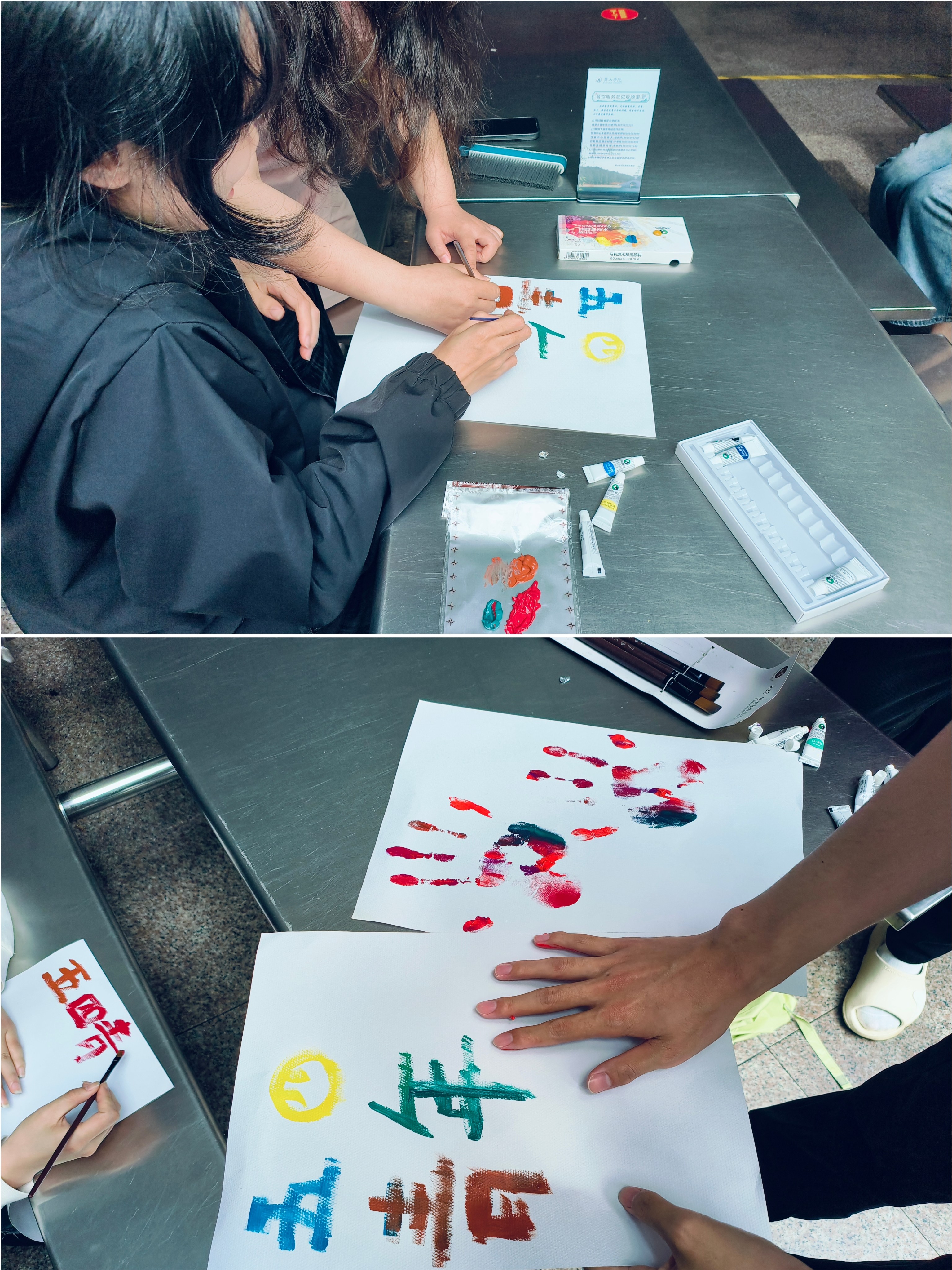 4月24日,各团支部在一食堂一楼举办“以掌心为媒,永葆五四赤子之心”主题团日活动。同学们将鲜艳的色彩涂于掌心,印于画布,将大家手中的力量与信仰凝聚在一起,构成了一幅绚丽多彩的图画,犹如大家五彩斑斓的未来。