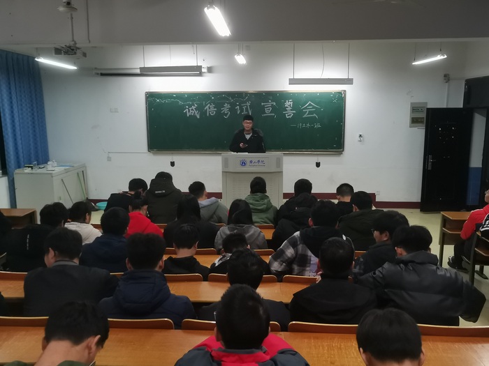 1月3日晚,19土木工程1班诚信考试宣誓会在横江校区教学楼1401教室举办。19土木1班全体人员参加了宣誓会。