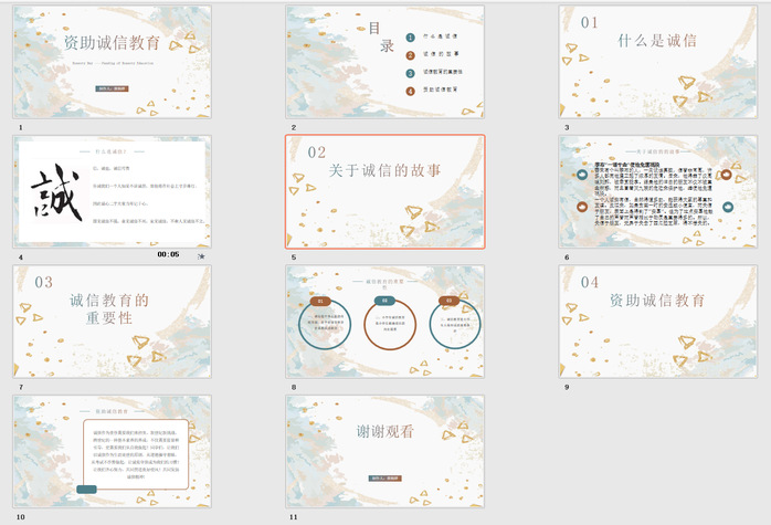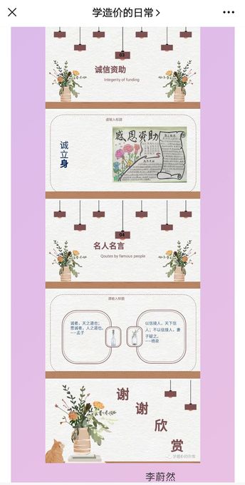 本次活动本次活动分为线上作品展示和评委打分环节。活动要求同学们以资助诚信为主题进行PPT设计,共吸引了30余名同学参赛。以更好地宣传诚信的本质与内涵,诚信与道德、成才的关系。活动中,参赛同学认真搜集素材,精心制作PPT,主要从何为诚信、诚信小故事、诚信格言、诚信教育的重要性和对资助诚信教育的理解等方面设计自己的作品。