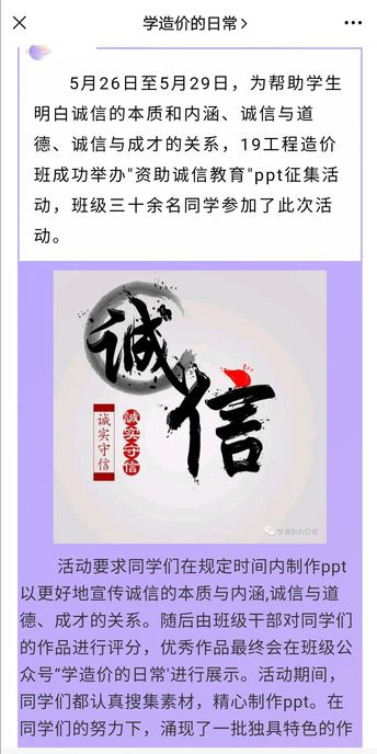 据悉,该活动优秀作品将会陆续在班级公众号“学造价的日常”宣传展示。