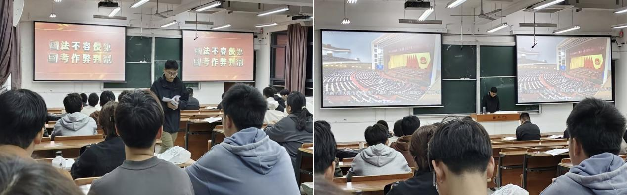 为更加直观地展示考试作弊的危害,学院还组织学生们观看了刑法修正案(九)警示教育宣传片。短片通过真实案例,生动展现了考试作弊对个人名誉、学业乃至未来职业生涯的严重影响。许多学生在观影后表示,要以此为鉴,珍惜自己的学业和人生,坚决抵制任何形式的作弊行为。